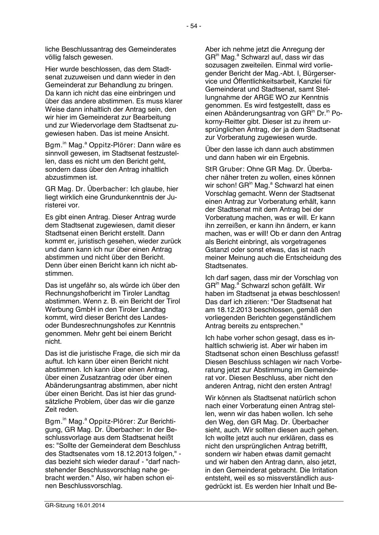 Bgm.in Mag.a Oppitz-Plörer: Zur Berichtigung, GR Mag. Dr. Überbacher: In der Beschlussvorlage aus dem Stadtsenat heißt