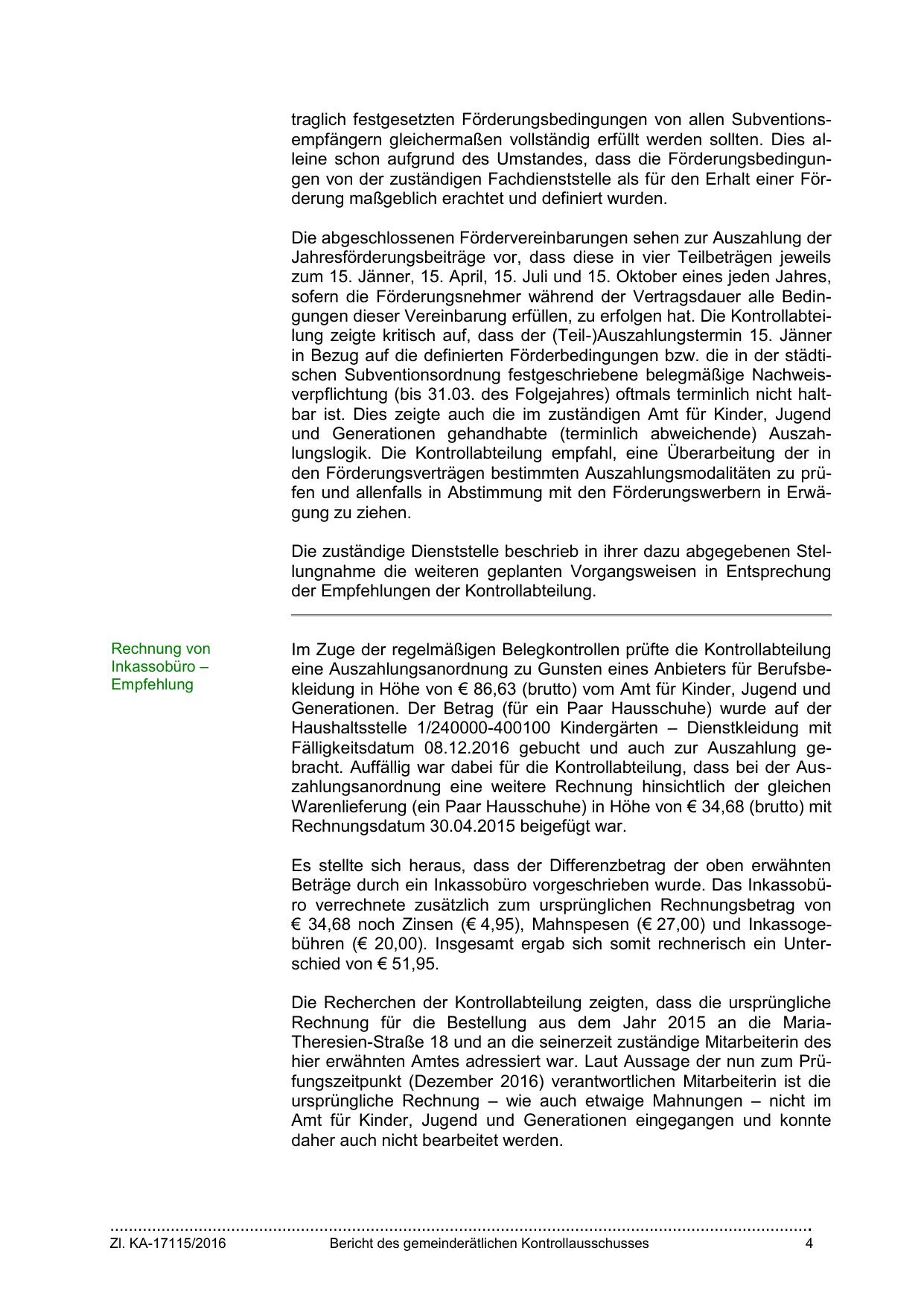 hier erwähnten Amtes adressiert war. Laut Aussage der nun zum Prüfungszeitpunkt (Dezember 2016) verantwortlichen Mitarbeiterin ist die