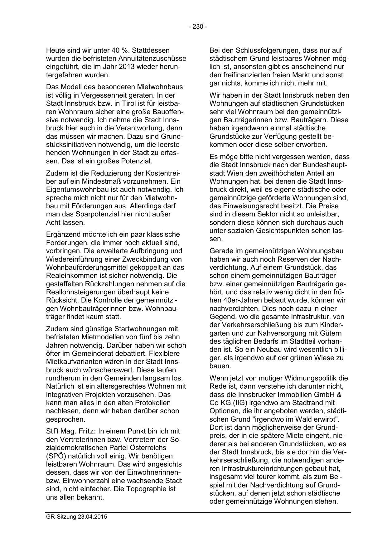Stadt Innsbruck bzw. in Tirol ist für leistbaren Wohnraum sicher eine große Bauoffensive notwendig. Ich nehme die Stadt Innsbruck hier auch in die Verantwortung, denn
