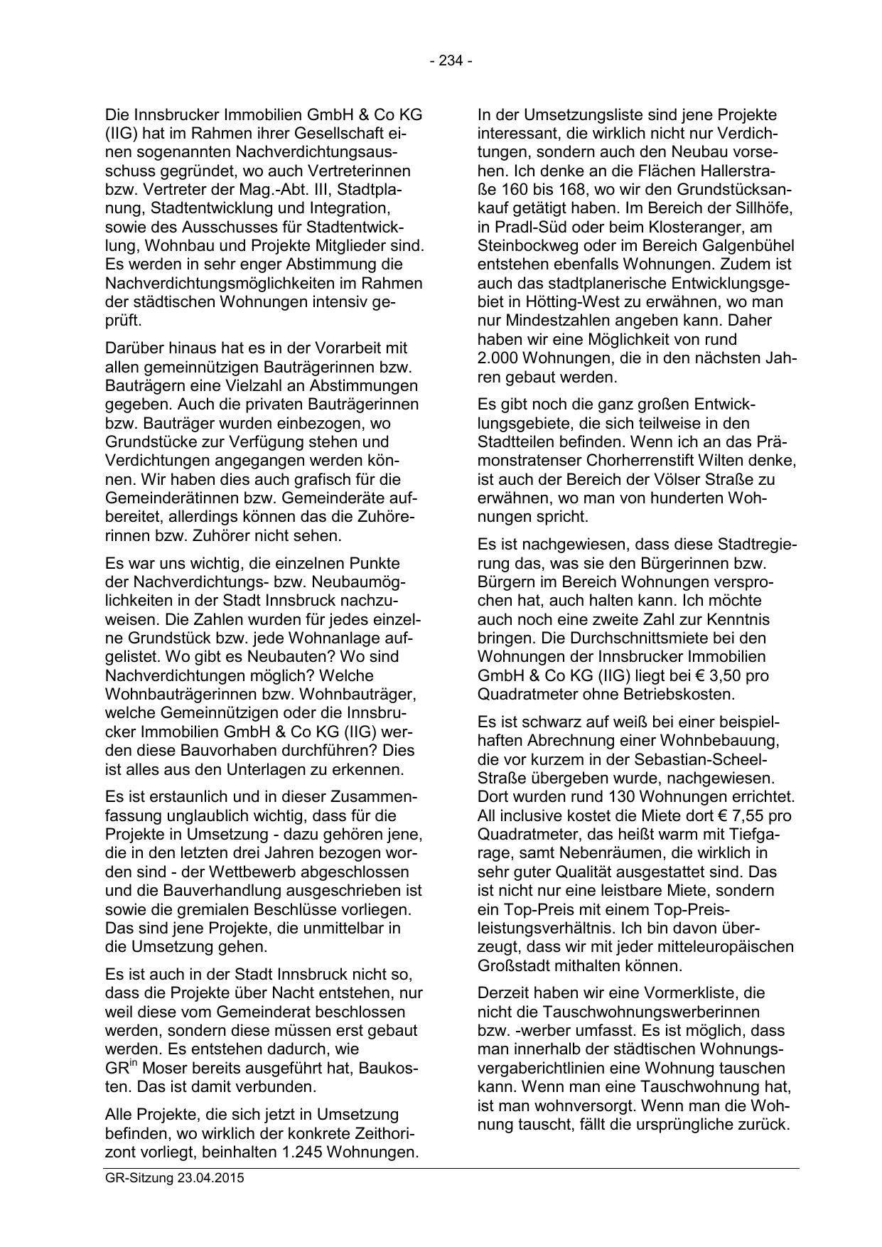 interessant, die wirklich nicht nur Verdichtungen, sondern auch den Neubau vorsehen. Ich denke an die Flächen Hallerstraße 160 bis 168, wo wir den Grundstücksankauf getätigt haben. Im Bereich der Sillhöfe,