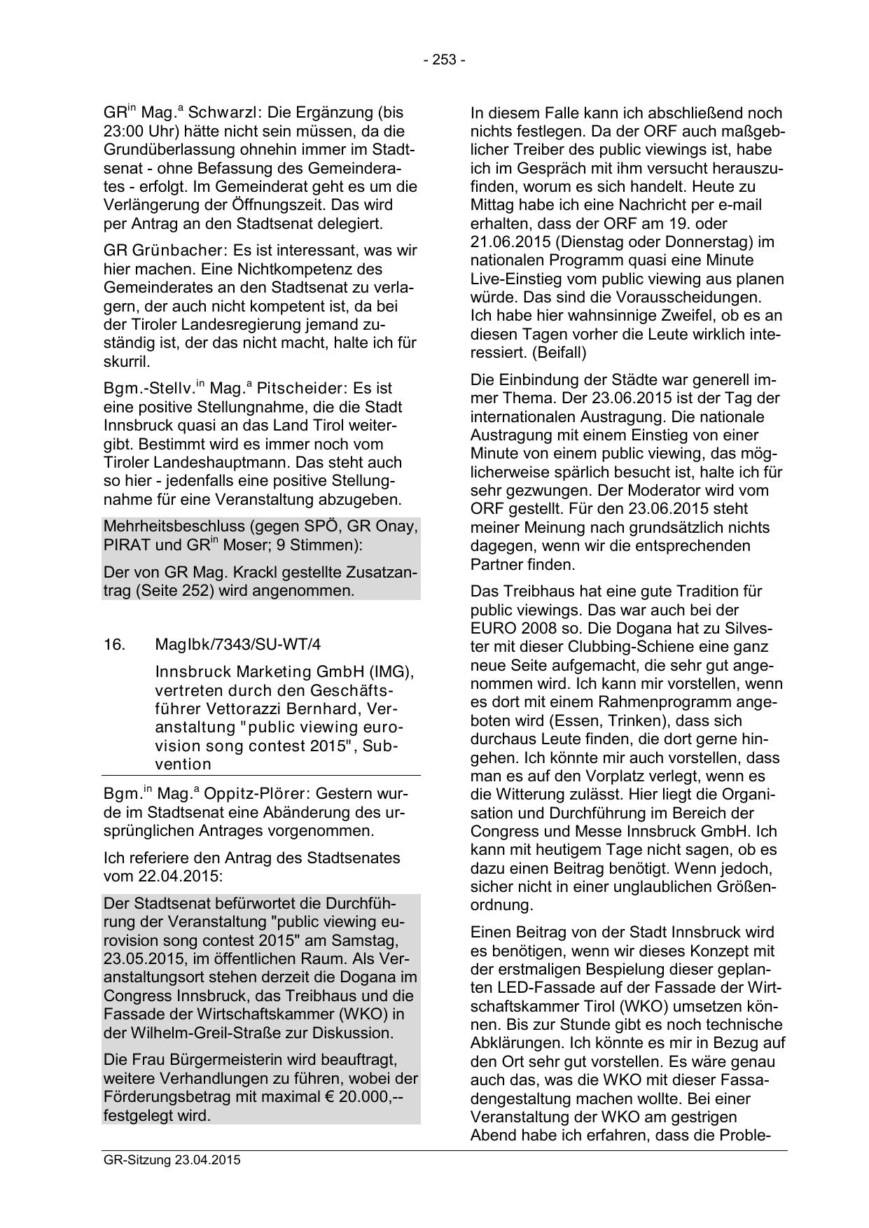 Der von GR Mag. Krackl gestellte Zusatzantrag (Seite 252) wird angenommen.