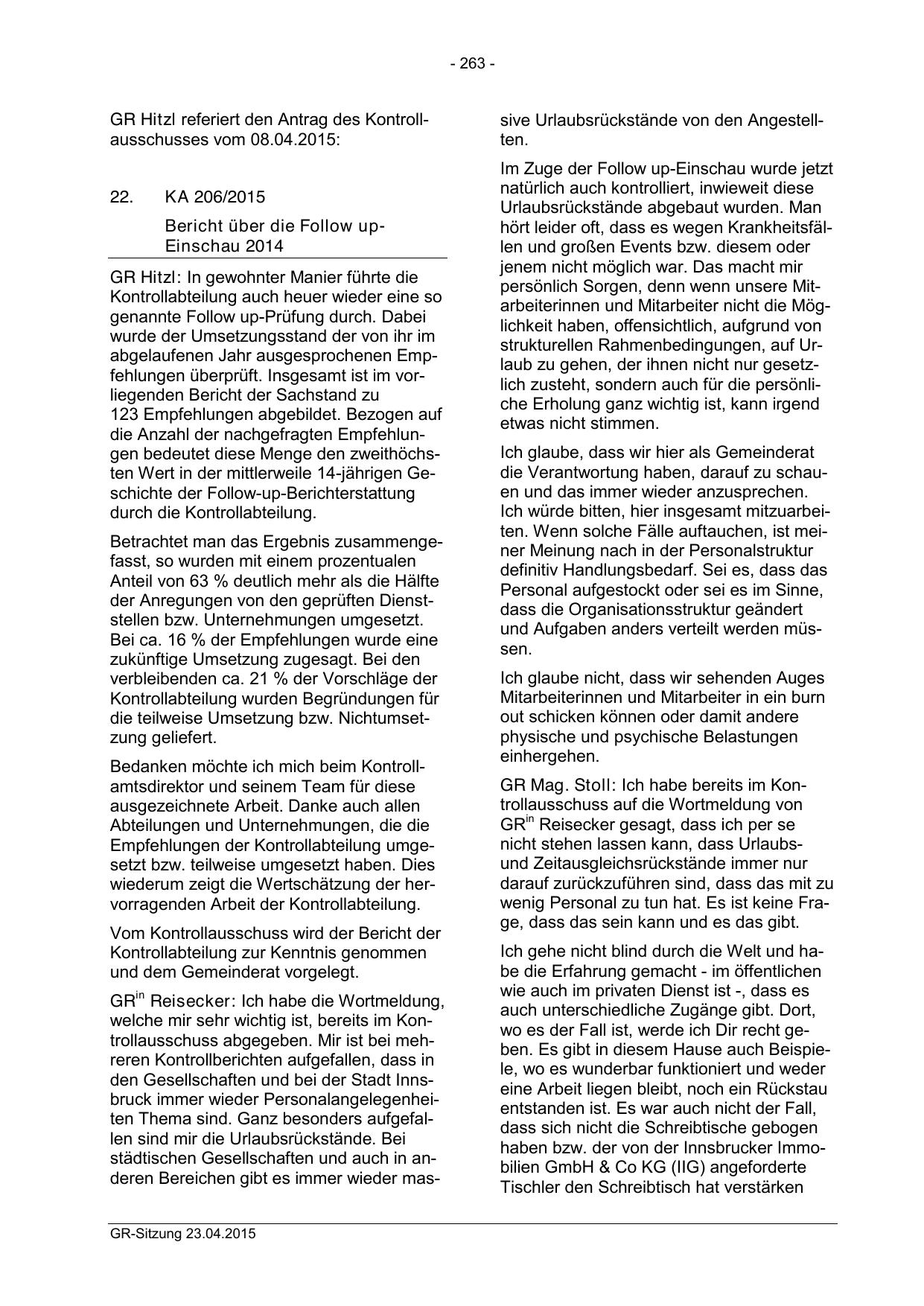 städtischen Gesellschaften und auch in anderen Bereichen gibt es immer wieder masGR-Sitzung 23.04.2015