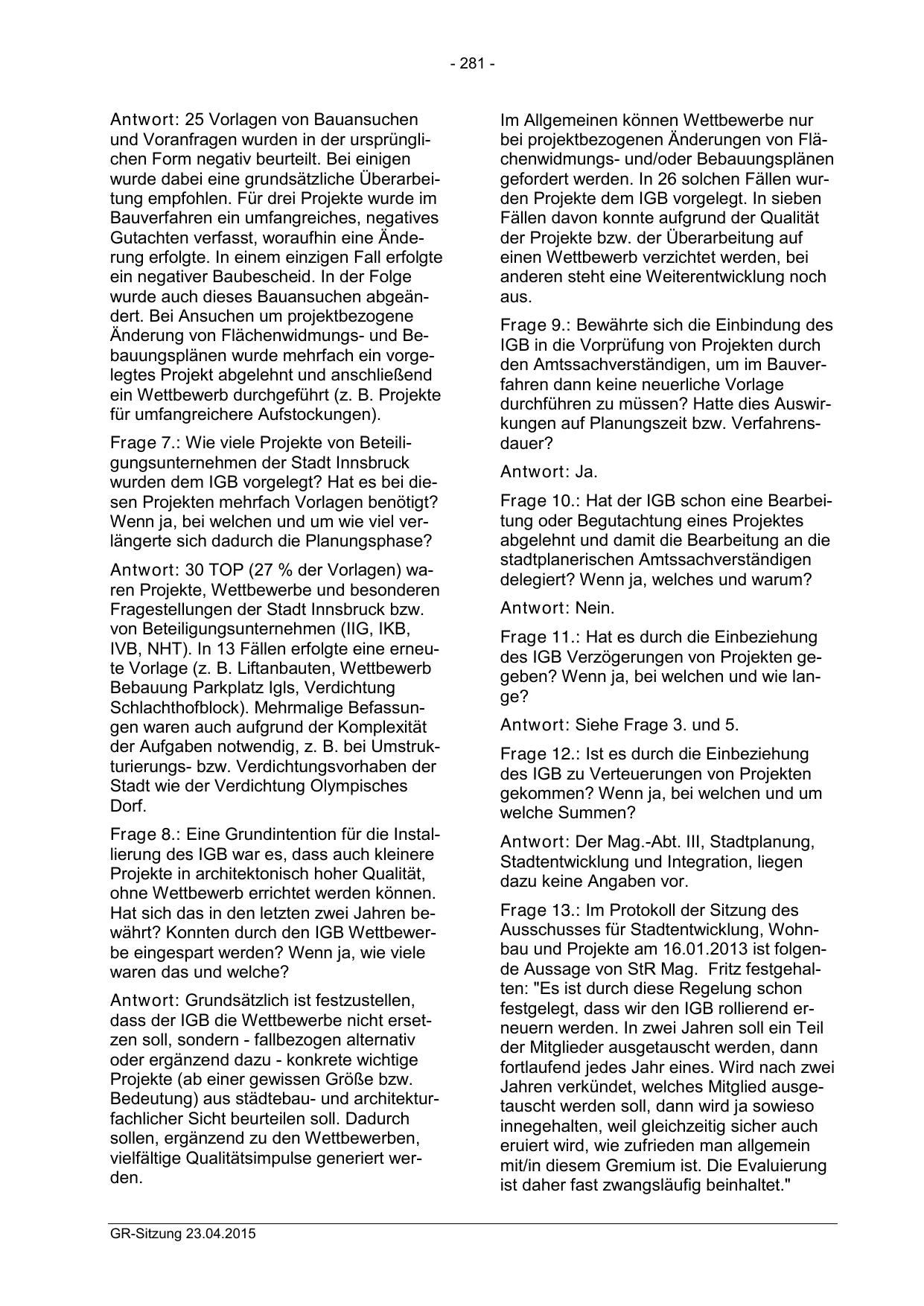 Ausschusses für Stadtentwicklung, Wohnbau und Projekte am 16.01.2013 ist folgende Aussage von StR Mag. Fritz festgehalten: "Es ist durch diese Regelung schon