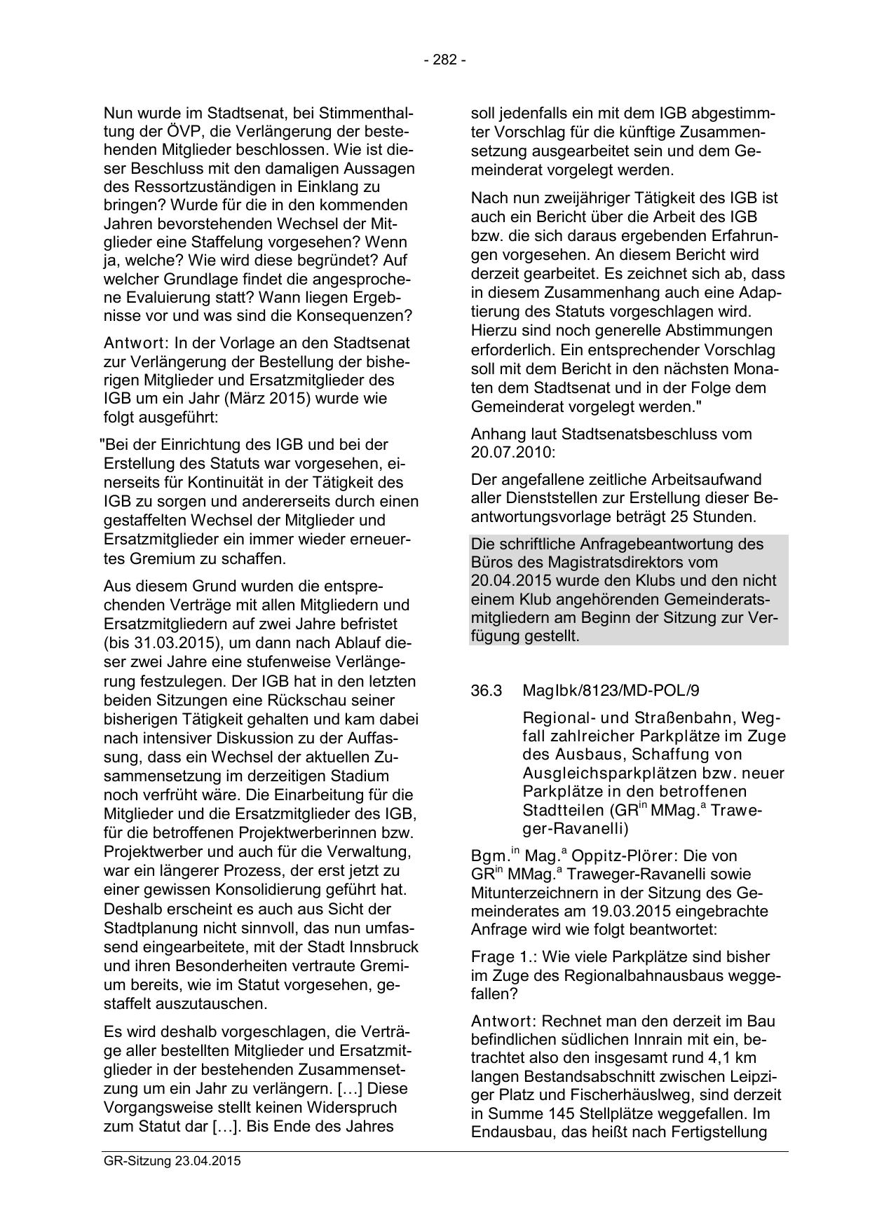soll jedenfalls ein mit dem IGB abgestimmter Vorschlag für die künftige Zusammensetzung ausgearbeitet sein und dem Gemeinderat vorgelegt werden.