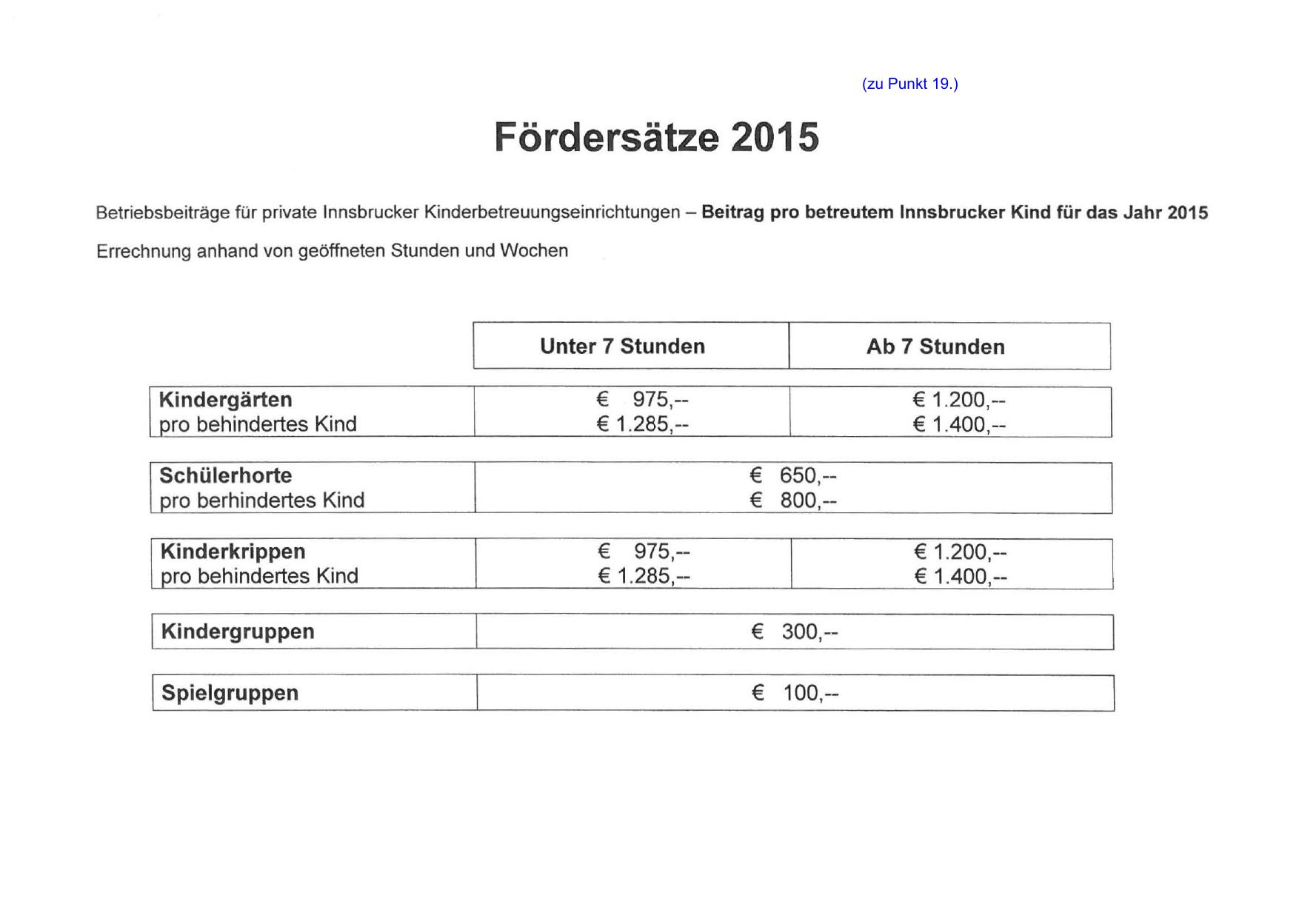 Betriebsbeiträge für private Innsbrucker Kinderbetreuungseinrichtungen - Beitrag pro betreutem Innsbrucker Kind tür das Jahr 2015