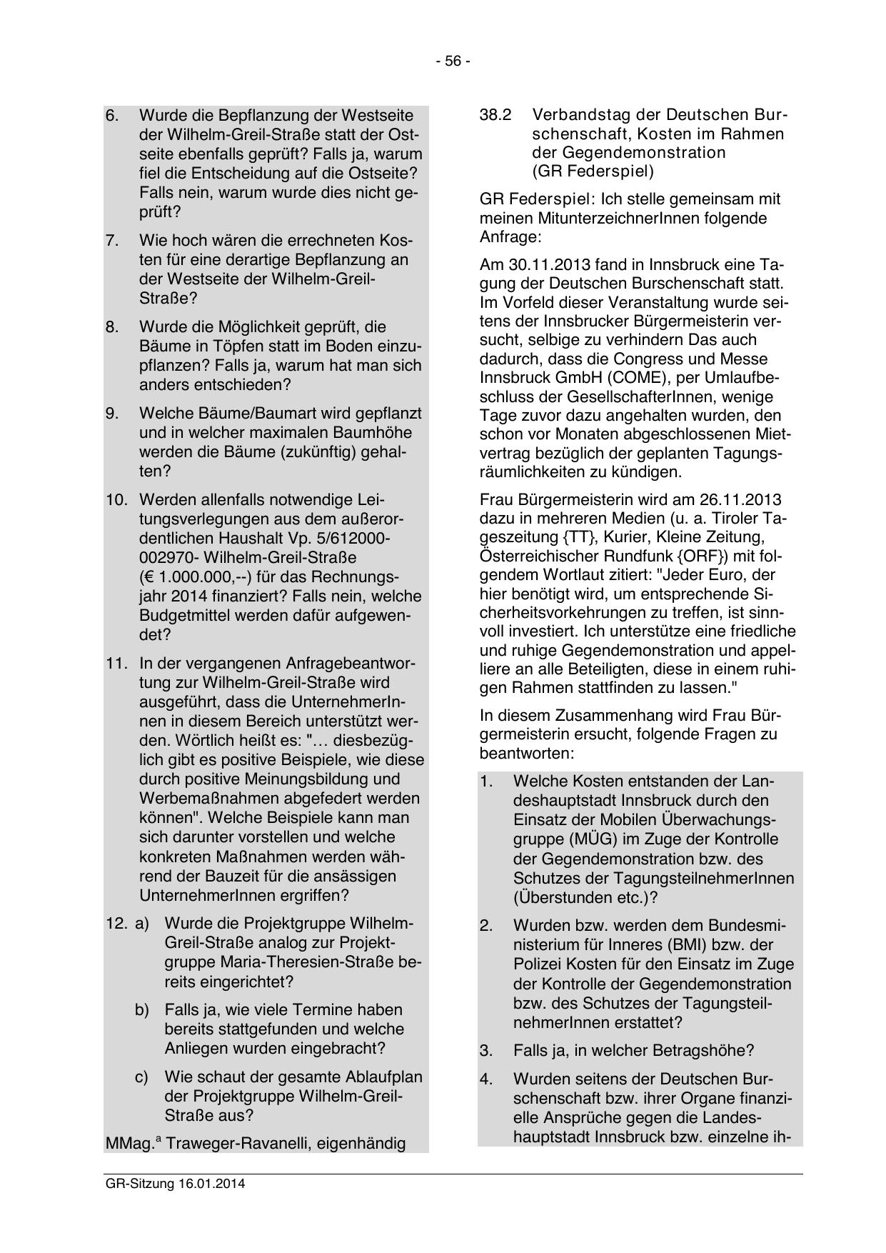 In diesem Zusammenhang wird Frau Bürgermeisterin ersucht, folgende Fragen zu