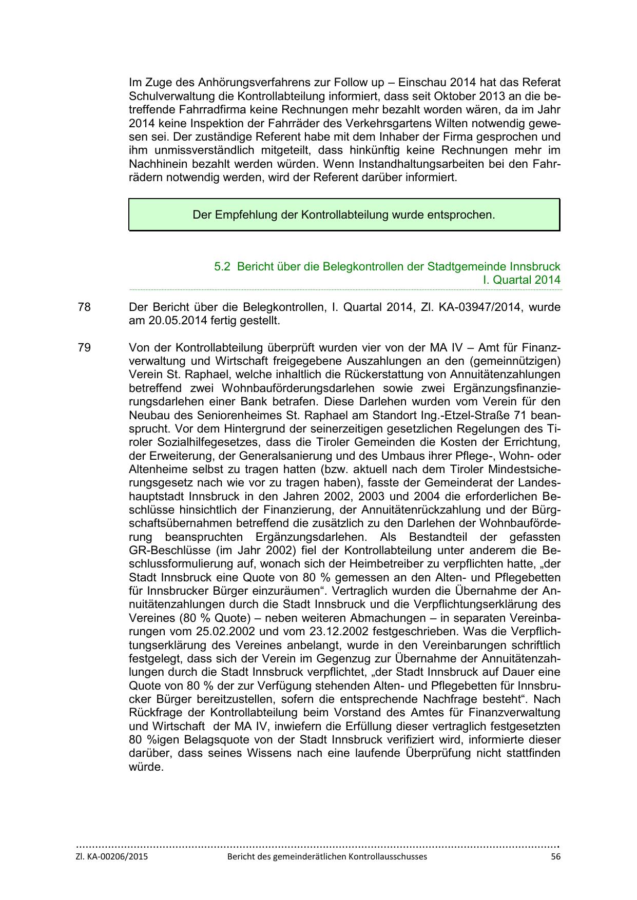 5.2 Bericht über die Belegkontrollen der Stadtgemeinde Innsbruck