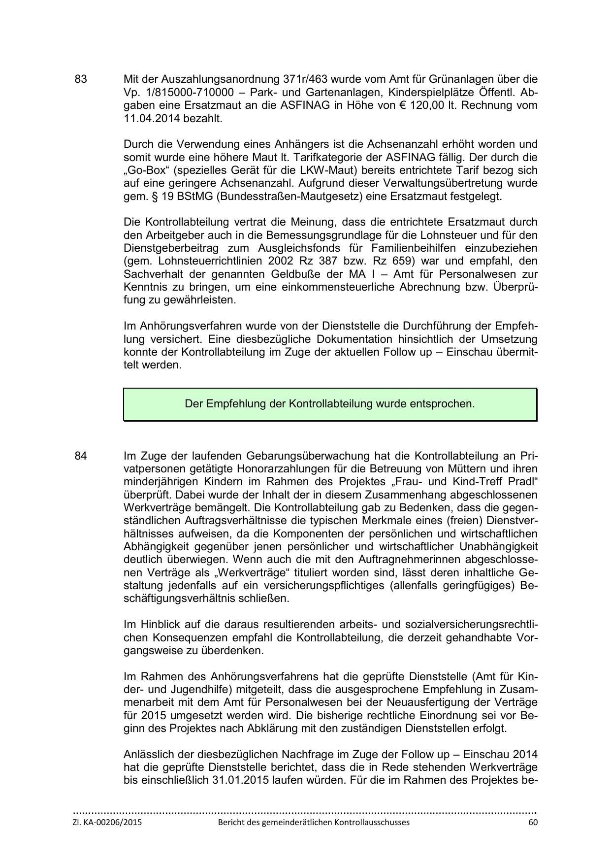 Anlässlich der diesbezüglichen Nachfrage im Zuge der Follow up – Einschau 2014