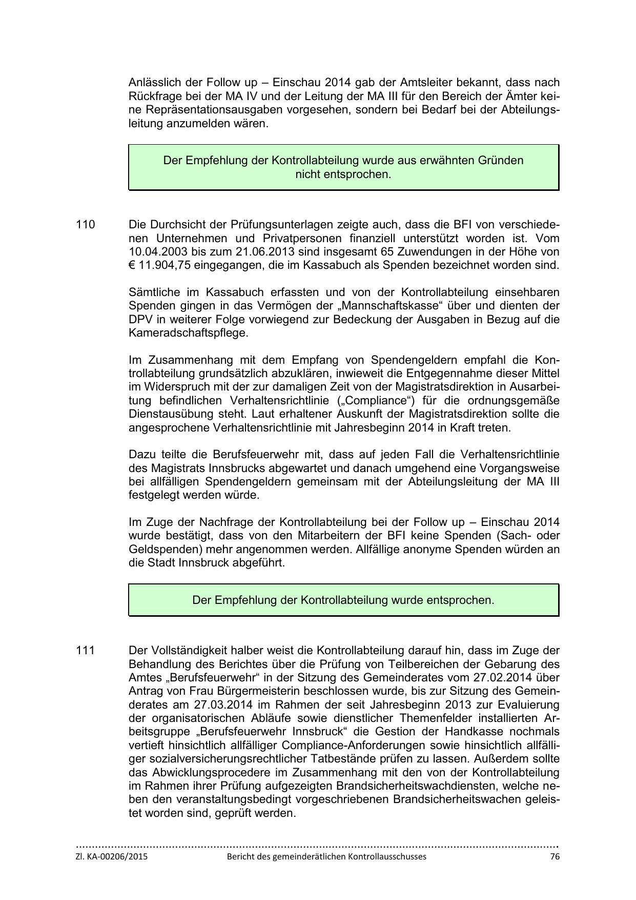 Der Vollständigkeit halber weist die Kontrollabteilung darauf hin, dass im Zuge der