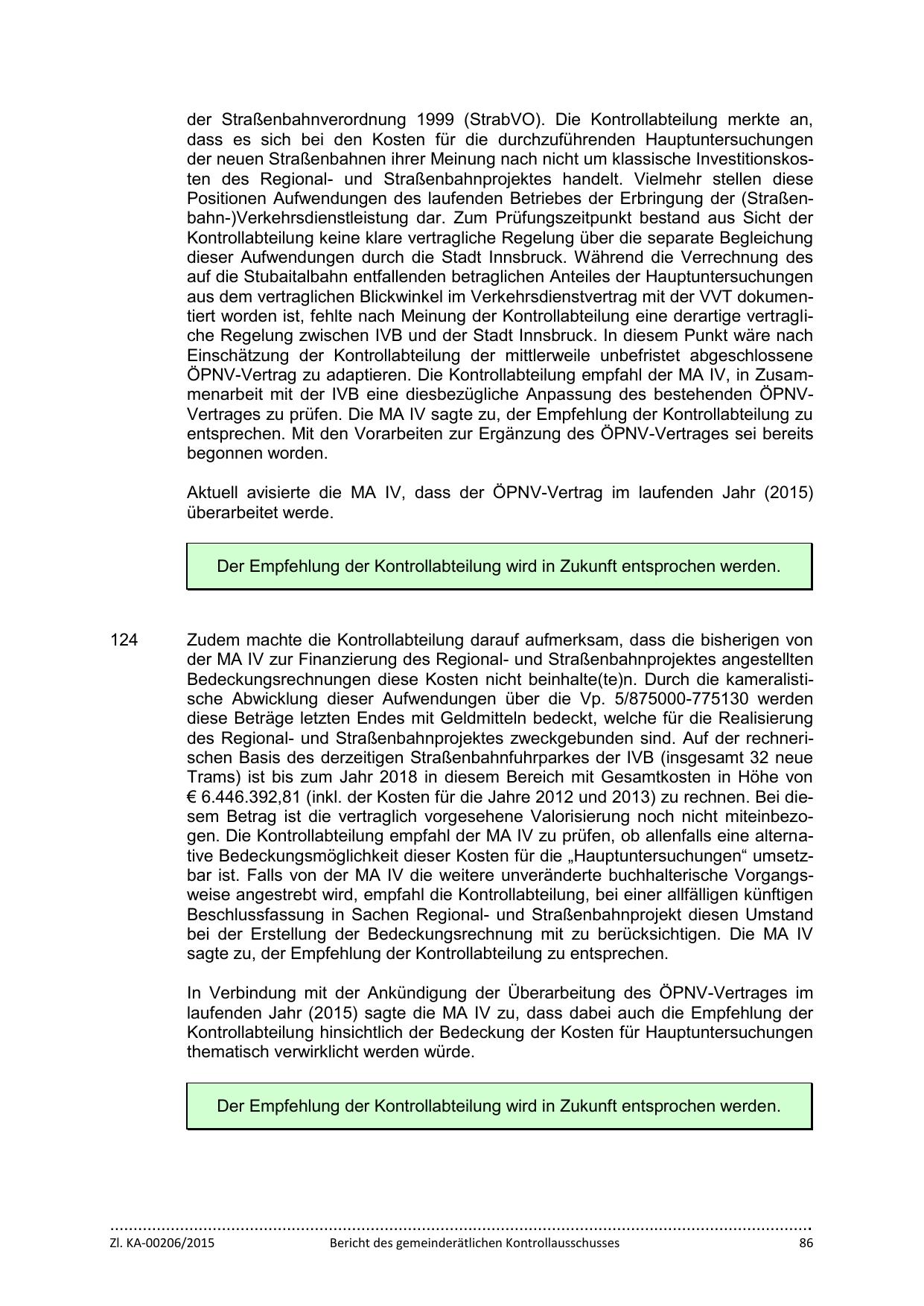 ÖPNV-Vertrag zu adaptieren. Die Kontrollabteilung empfahl der MA IV, in Zusammenarbeit mit der IVB eine diesbezügliche Anpassung des bestehenden ÖPNVVertrages zu prüfen. Die MA IV sagte zu, der Empfehlung der Kontrollabteilung zu