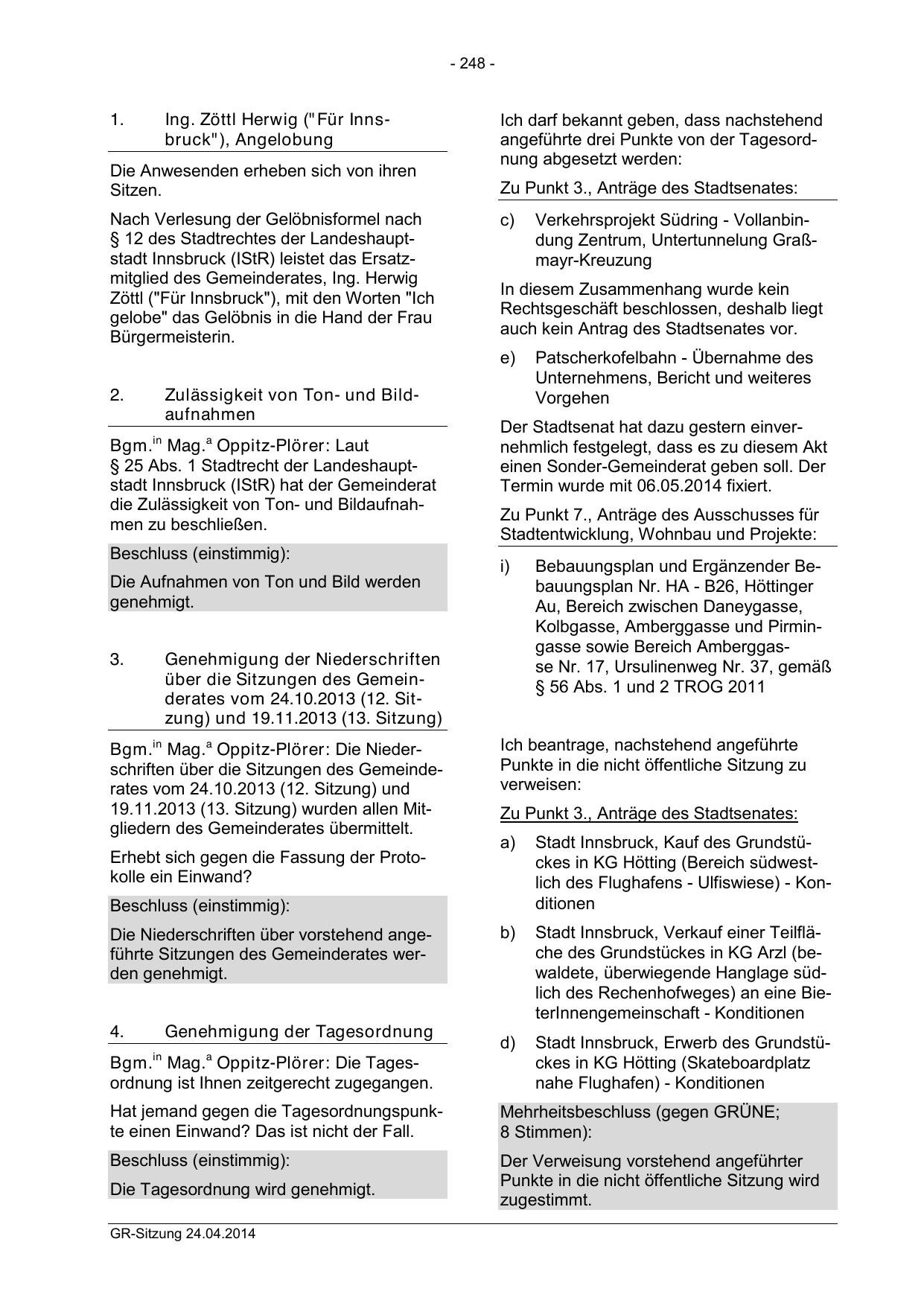 § 12 des Stadtrechtes der Landeshauptstadt Innsbruck (IStR) leistet das Ersatzmitglied des Gemeinderates, Ing. Herwig