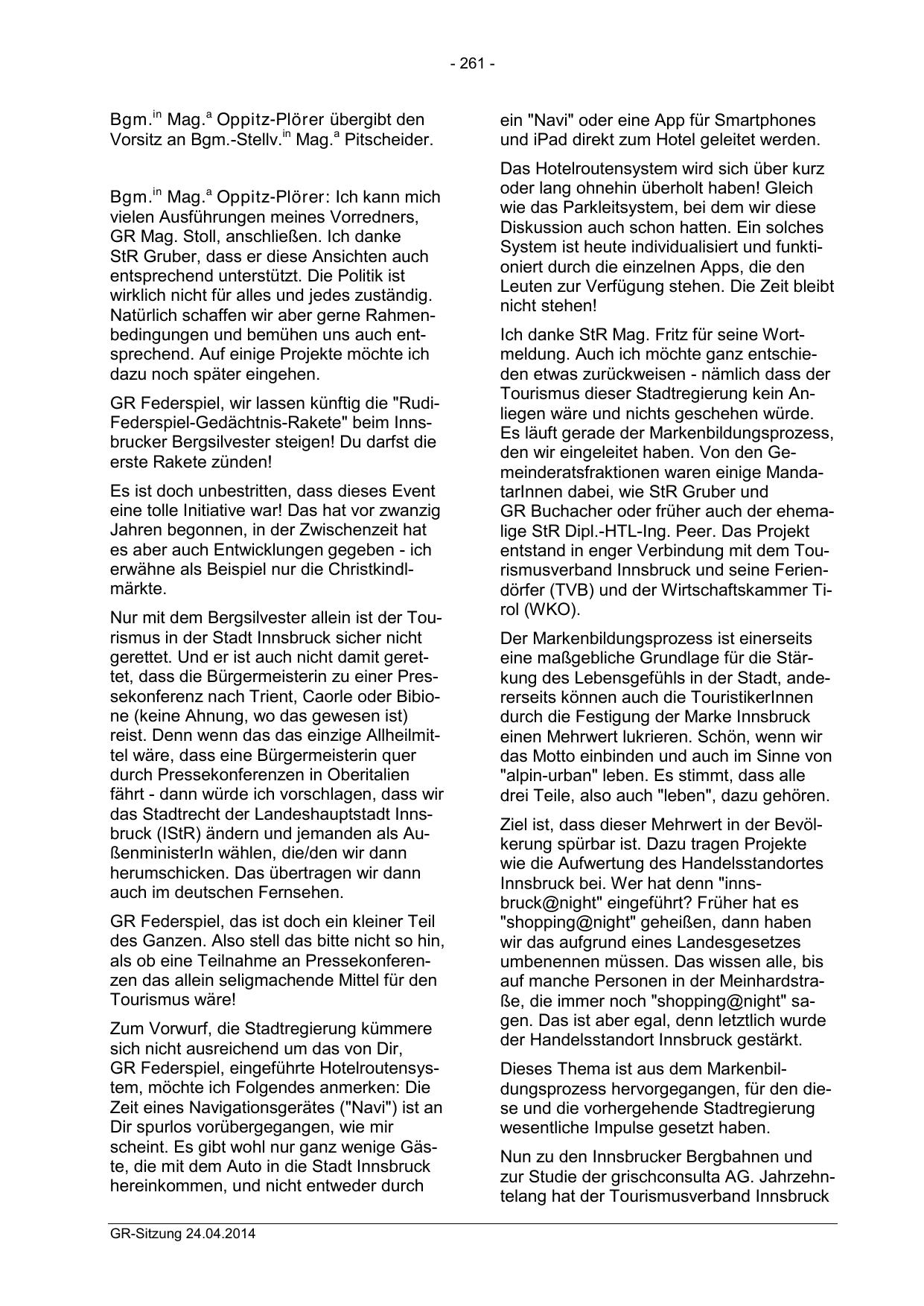 Vorsitz an Bgm.-Stellv.in Mag.a Pitscheider.