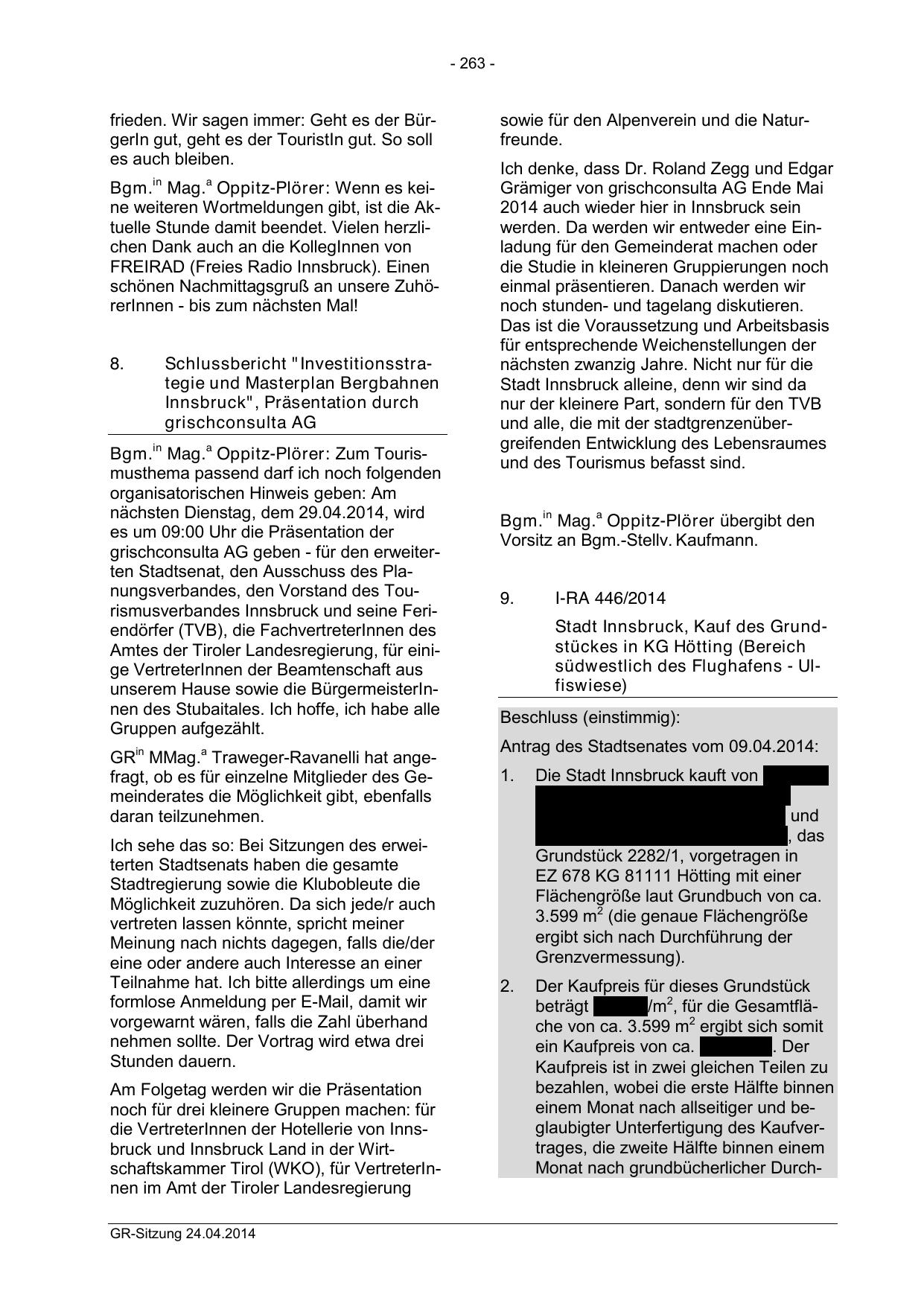 grischconsulta AG geben - für den erweiterten Stadtsenat, den Ausschuss des Planungsverbandes, den Vorstand des Tourismusverbandes Innsbruck und seine Feriendörfer (TVB), die FachvertreterInnen des