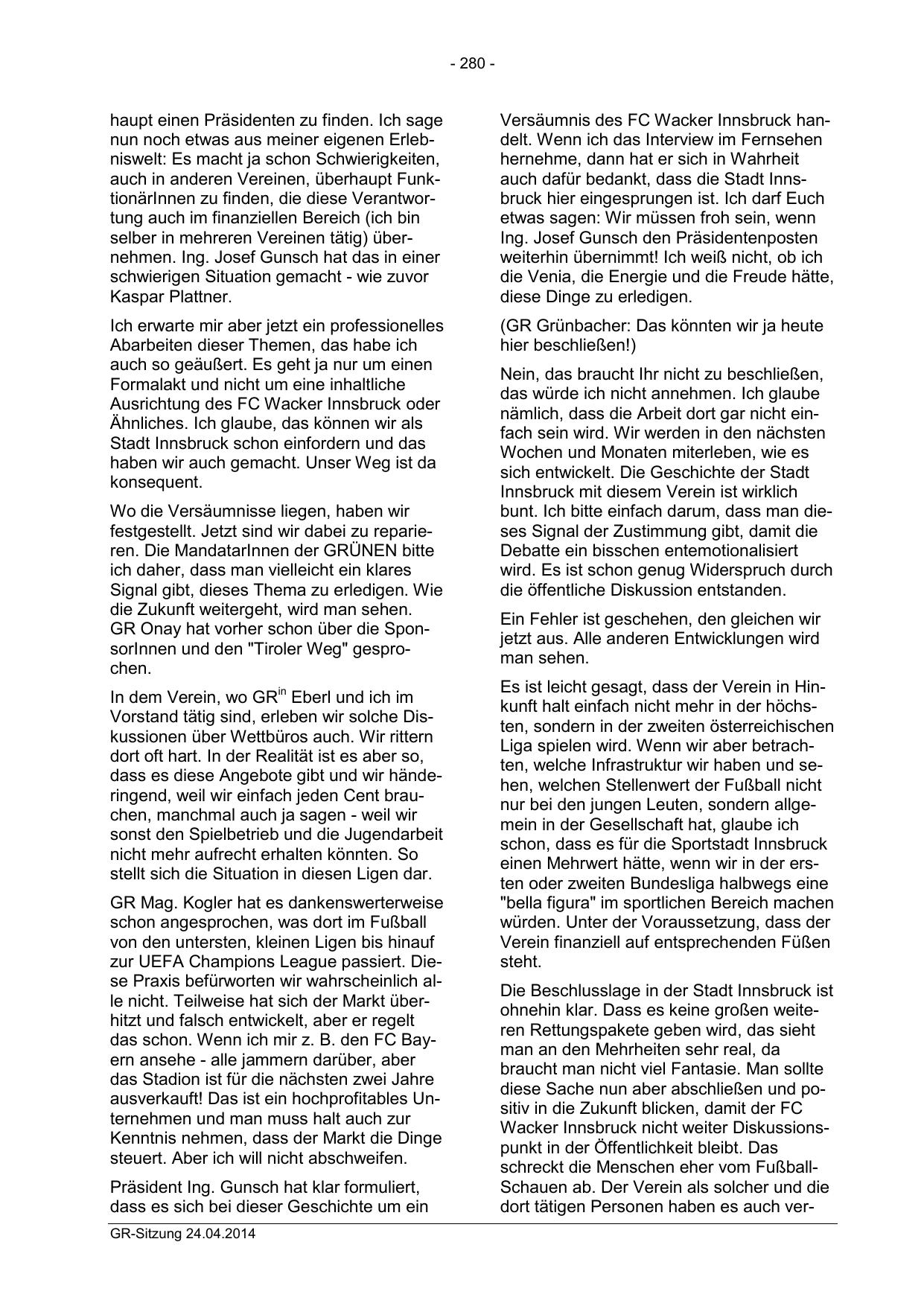 Wacker Innsbruck nicht weiter Diskussionspunkt in der Öffentlichkeit bleibt. Das