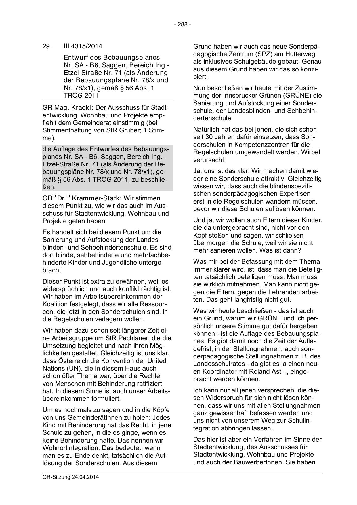 Nun beschließen wir heute mit der Zustimmung der Innsbrucker Grünen (GRÜNE) die