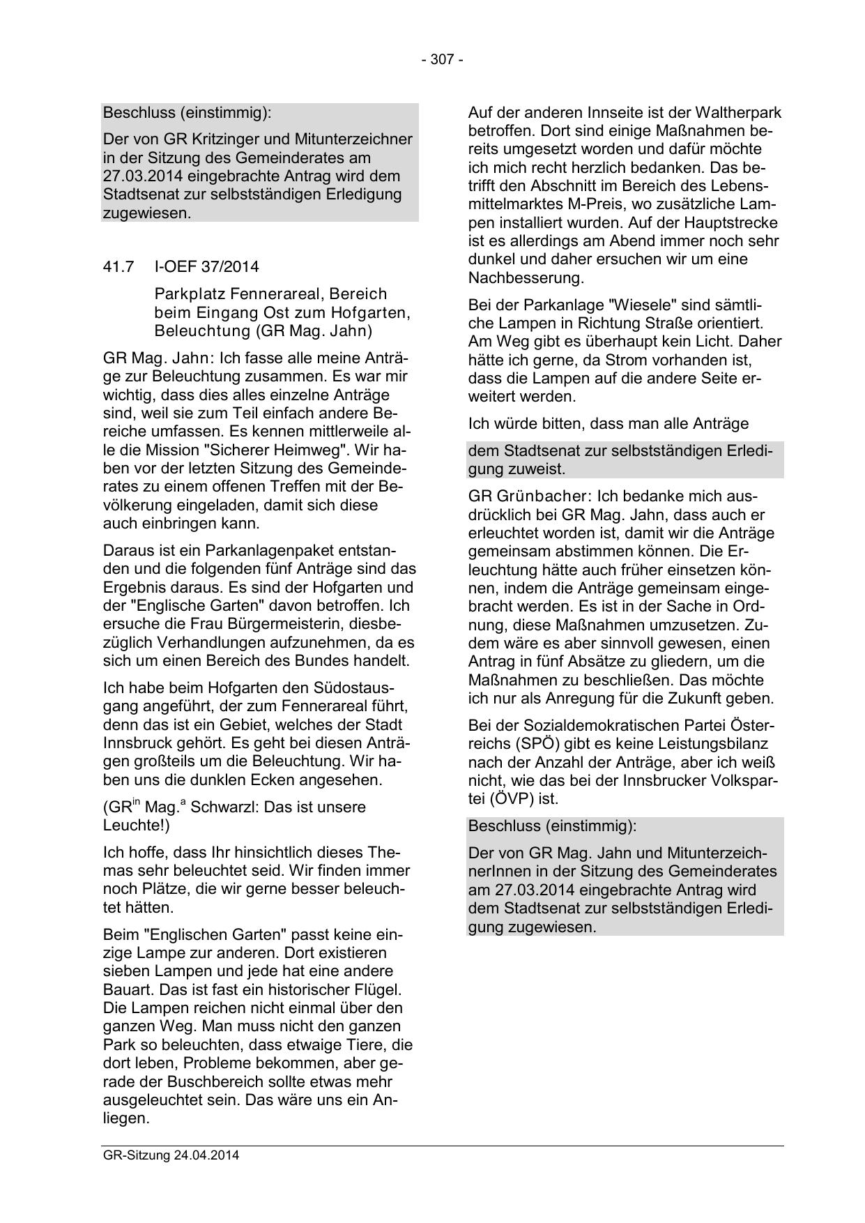 GR Mag. Jahn: Ich fasse alle meine Anträge zur Beleuchtung zusammen. Es war mir