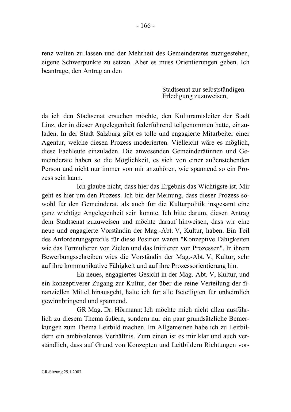 GR Mag. Dr. Hörmann: Ich möchte mich nicht allzu ausführlich zu diesem Thema äußern, sondern nur ein paar grundsätzliche Bemerkungen zum Thema Leitbild machen. Im Allgemeinen habe ich zu Leitbildern ein ambivalentes Verhältnis. Zum einen ist es mir klar und auch verständlich, dass auf Grund von Konzepten und Leitbildern Richtungen vor-
