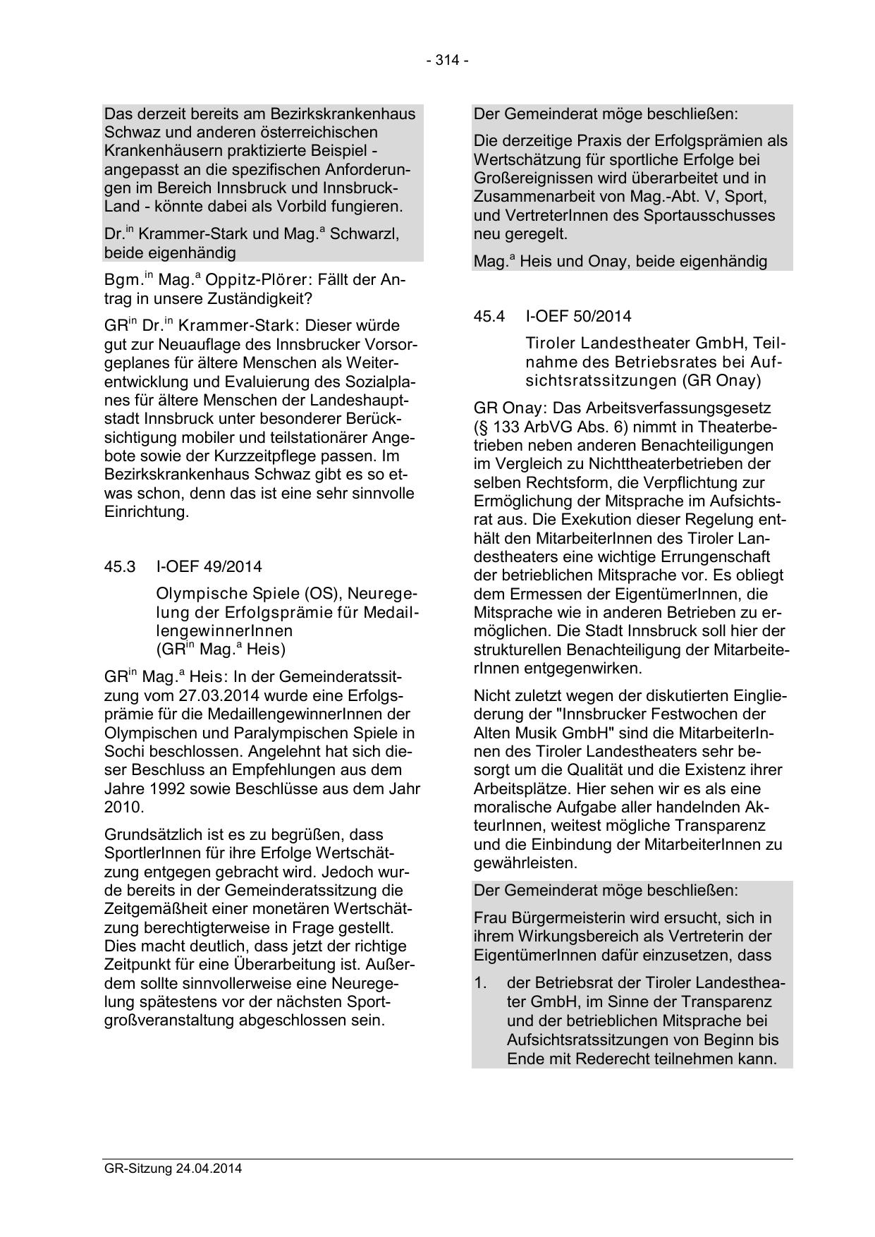 Tiroler Landestheater GmbH, Teilnahme des Betriebsrates bei Aufsichtsratssitzungen (GR Onay)