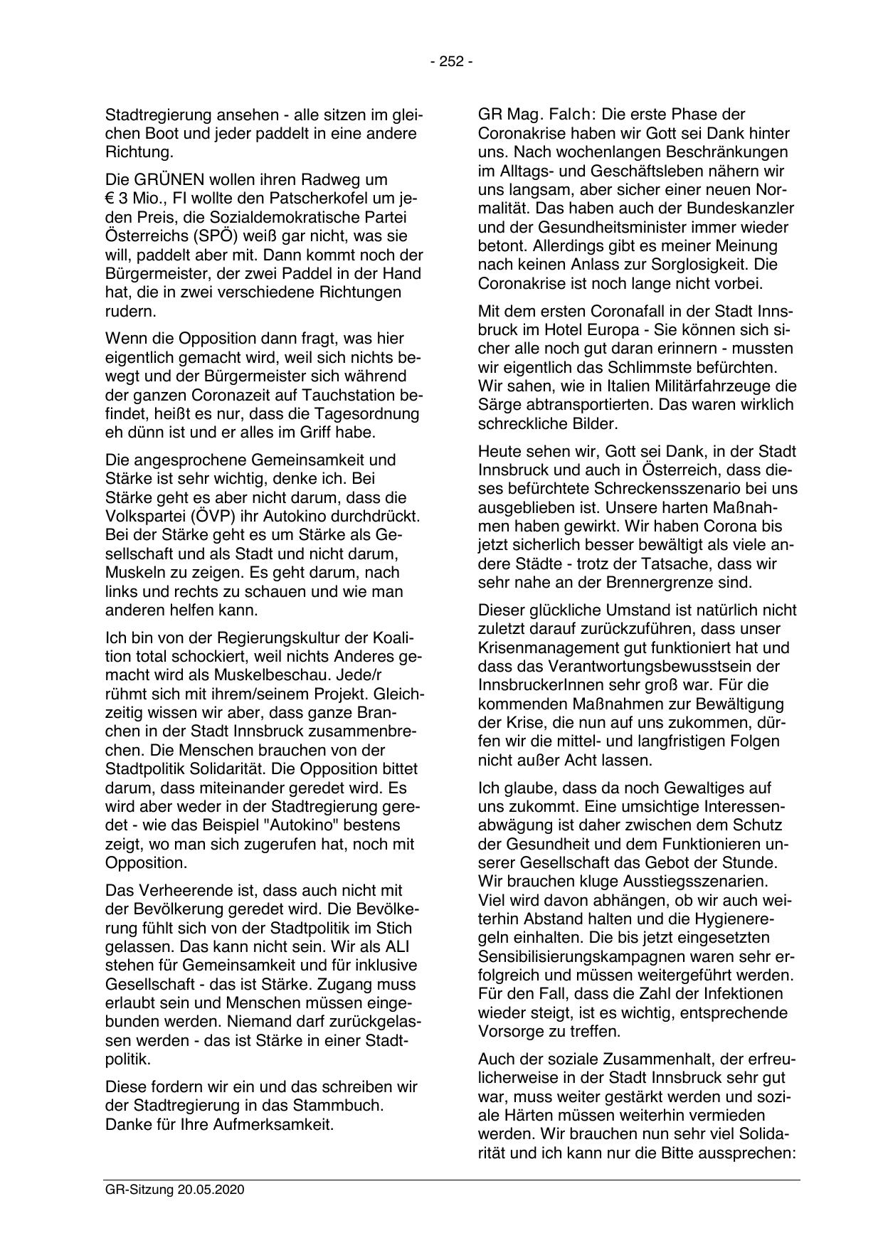 rühmt sich mit ihrem/seinem Projekt. Gleichzeitig wissen wir aber, dass ganze Branchen in der Stadt Innsbruck zusammenbrechen. Die Menschen brauchen von der