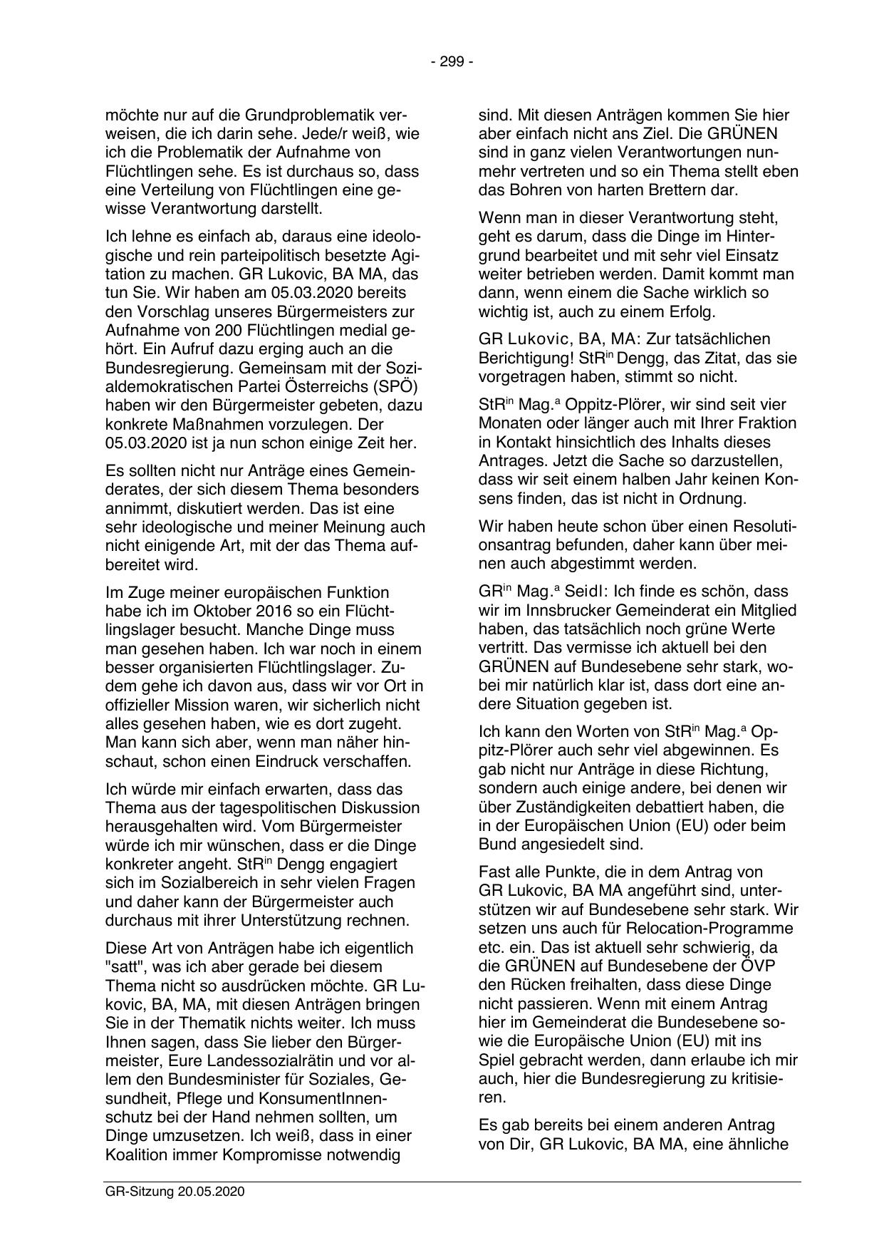 Thema nicht so ausdrücken möchte. GR Lukovic, BA, MA, mit diesen Anträgen bringen