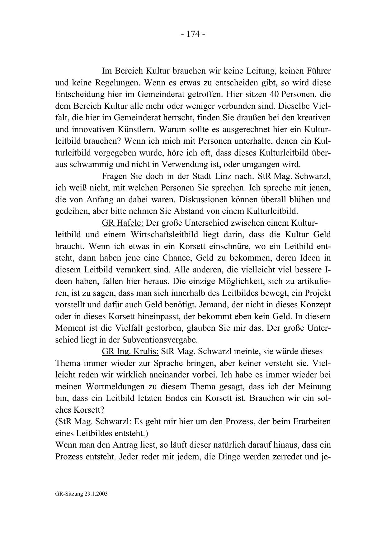 GR Hafele: Der große Unterschied zwischen einem Kulturleitbild und einem Wirtschaftsleitbild liegt darin, dass die Kultur Geld