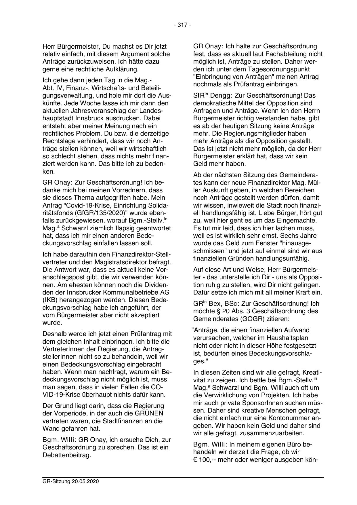 Antrag "Covid-19-Krise, Einrichtung Solidaritätsfonds (GfGR/135/2020)" wurde ebenfalls zurückgewiesen, worauf Bgm.-Stellv.in