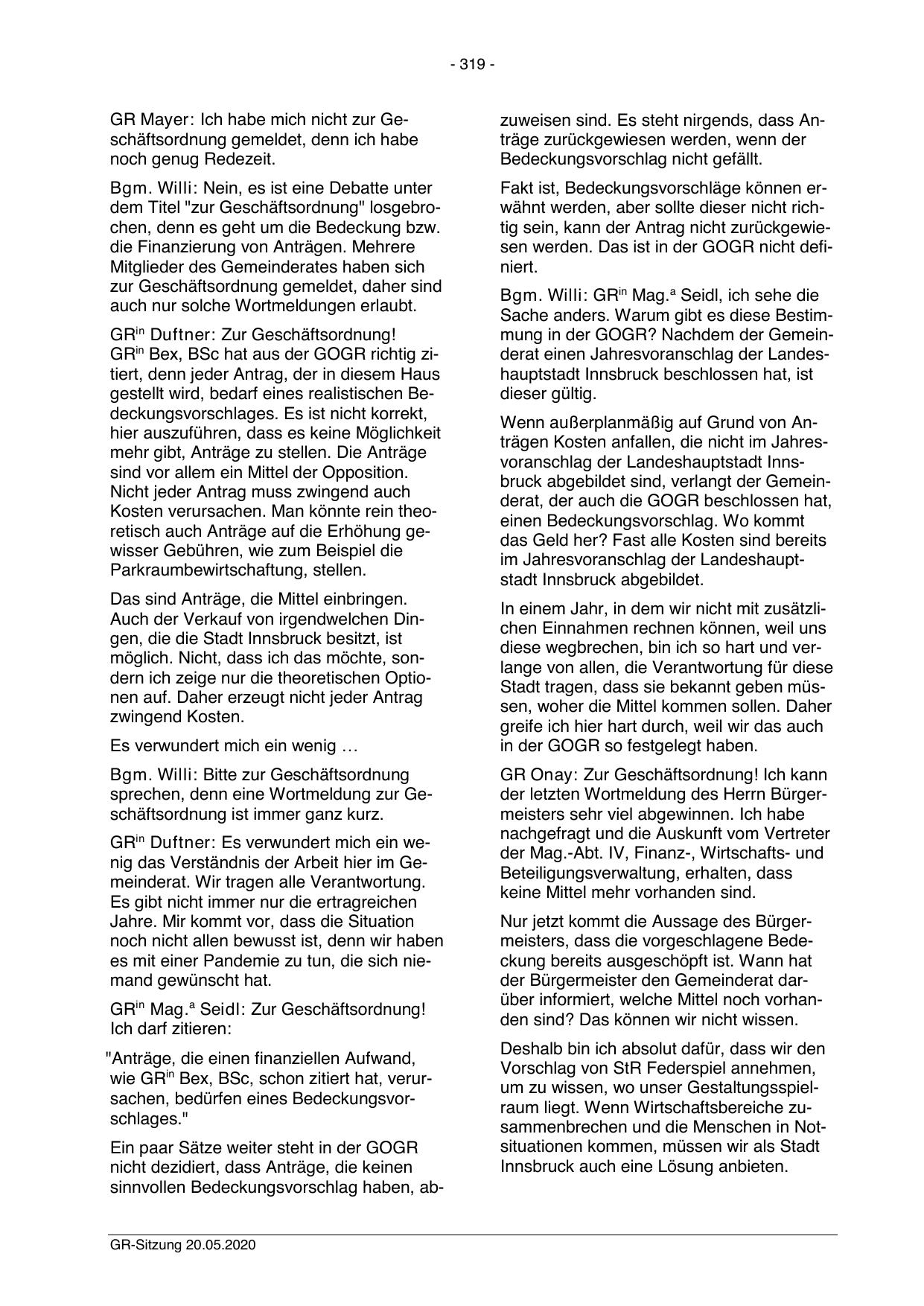Sache anders. Warum gibt es diese Bestimmung in der GOGR? Nachdem der Gemeinderat einen Jahresvoranschlag der Landeshauptstadt Innsbruck beschlossen hat, ist