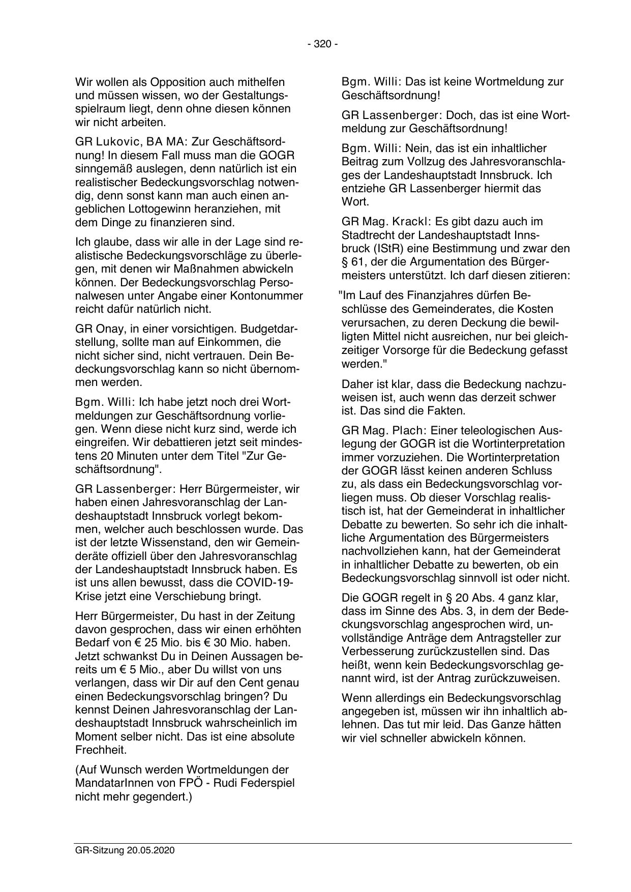 Bgm. Willi: Ich habe jetzt noch drei Wortmeldungen zur Geschäftsordnung vorliegen. Wenn diese nicht kurz sind, werde ich