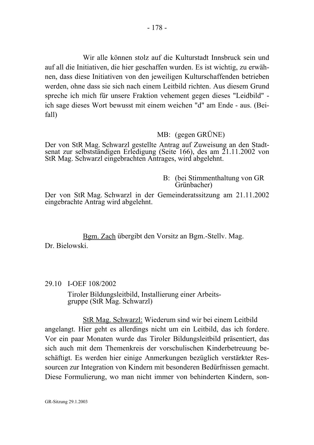 Der von StR Mag. Schwarzl in der Gemeinderatssitzung am 21.11.2002