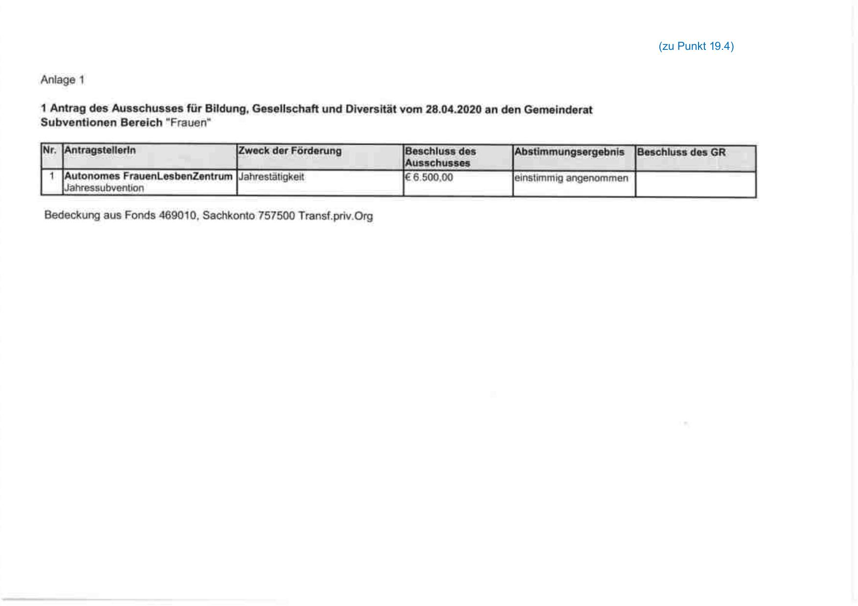 1 Antrag des Ausschusses für Bildung, Gesellschaft und Diversität vom 28.04.2020 an den Gemeinderat