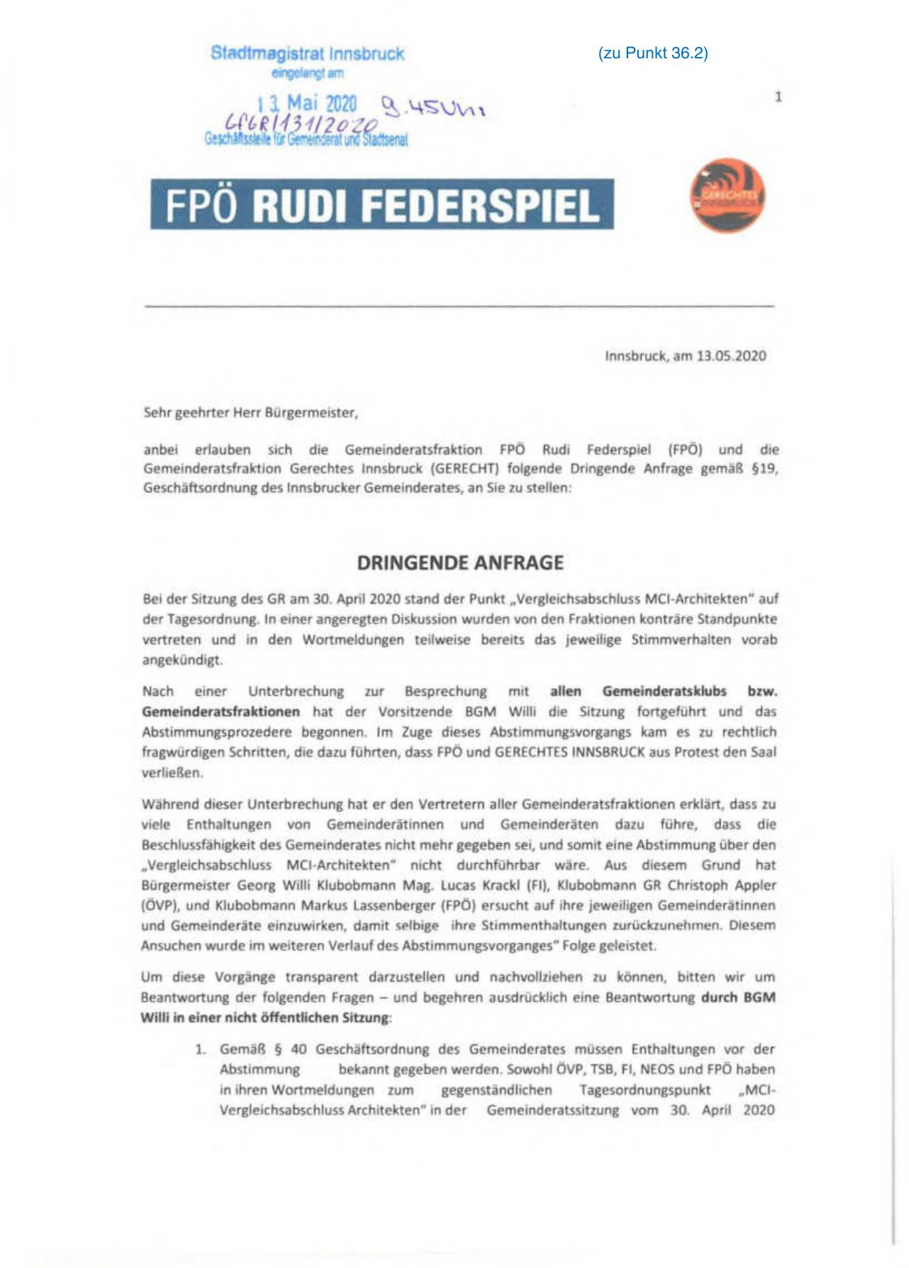 anbei erlauben sich die Gemeinderatsfraktion FPÖ Rudi Federspiel (FPÖ ) und die