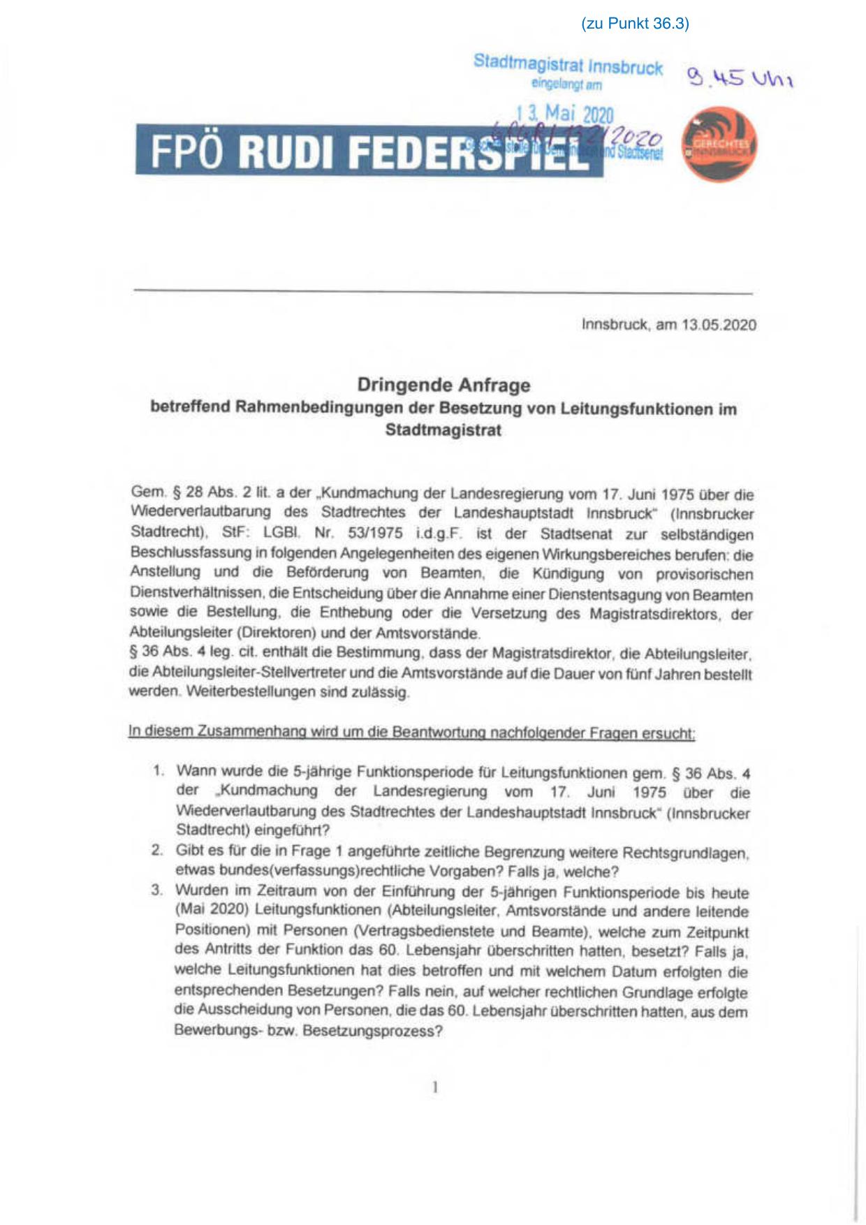 Wiederverlautbarung des Stadtrechtes der Landeshauptstadt Innsbruck“ (Innsbrucker