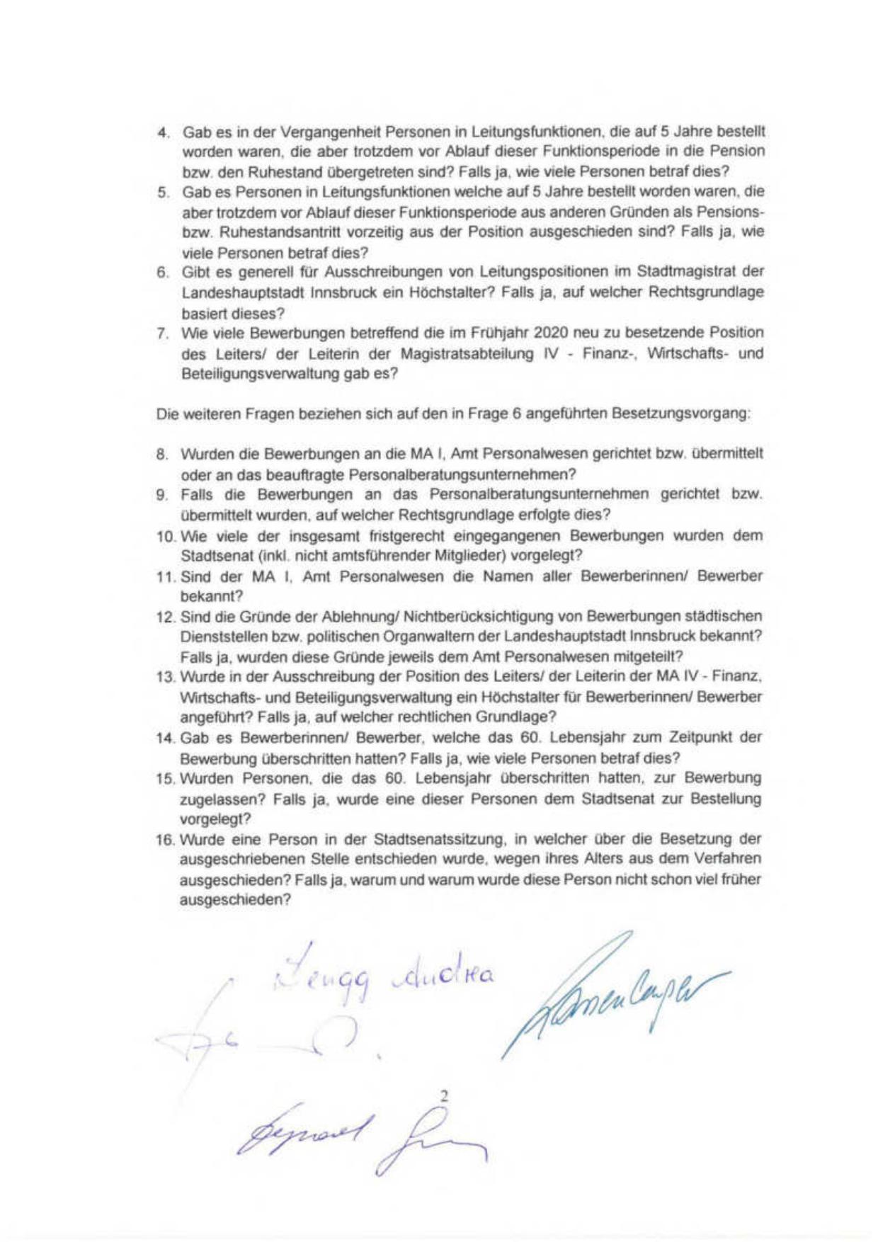 zugelassen? Falls ja, wurde eine dieser Personen dem Stadtsenat zur Bestellung