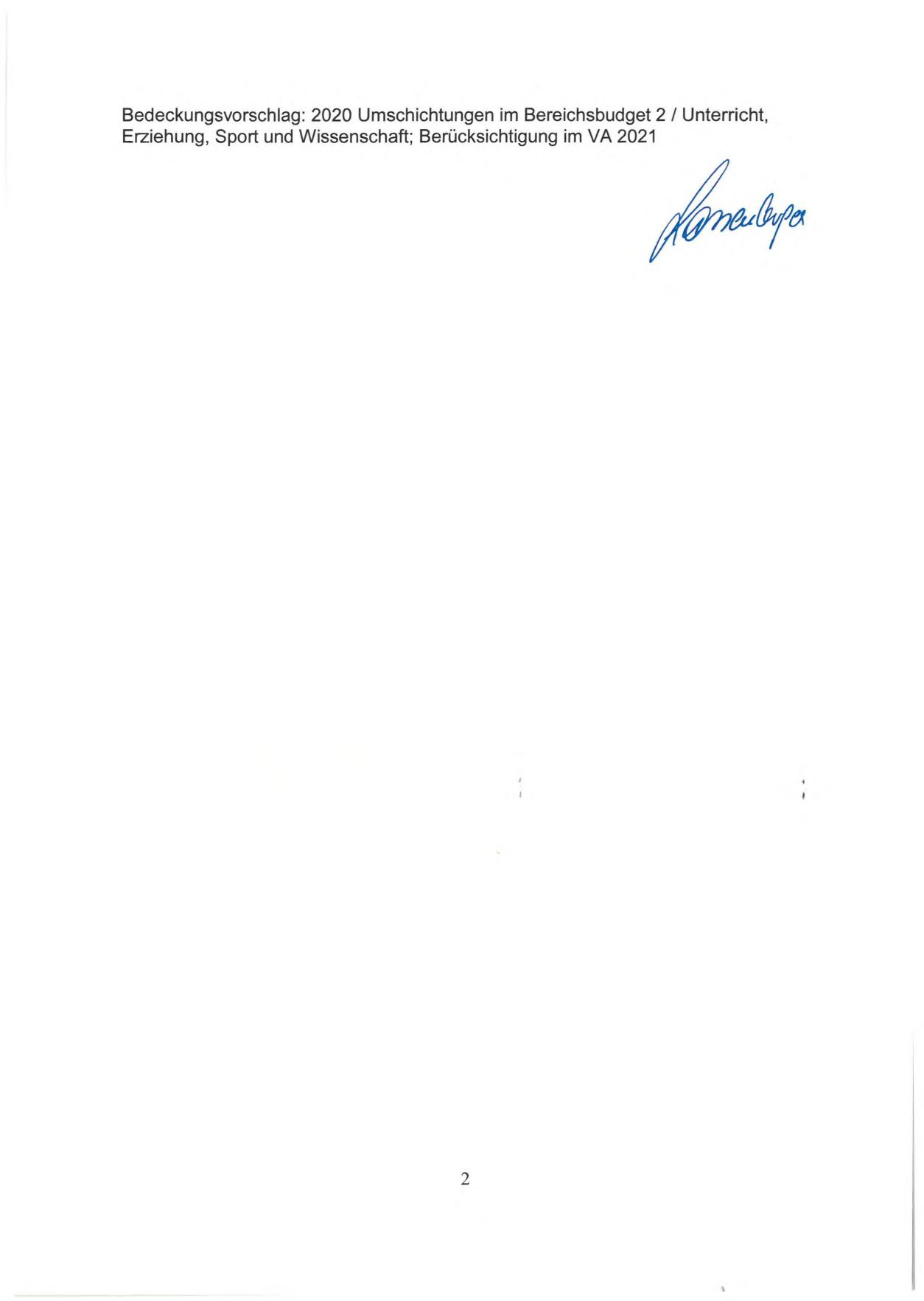 Bedeckungsvorschlag: 2020 Umschichtungen im Bereichsbudget 2 / Unterricht