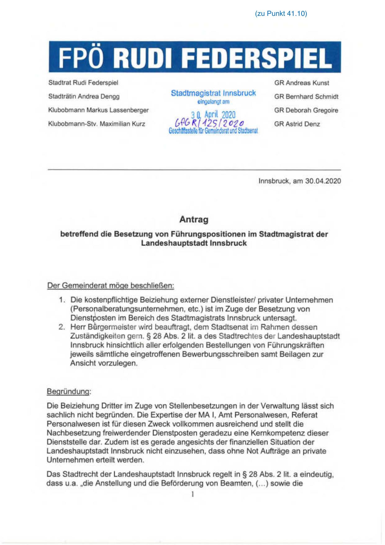 Landeshauptstadt Innsbruck nicht einzusehen, dass ohne Not Aufträge an private
