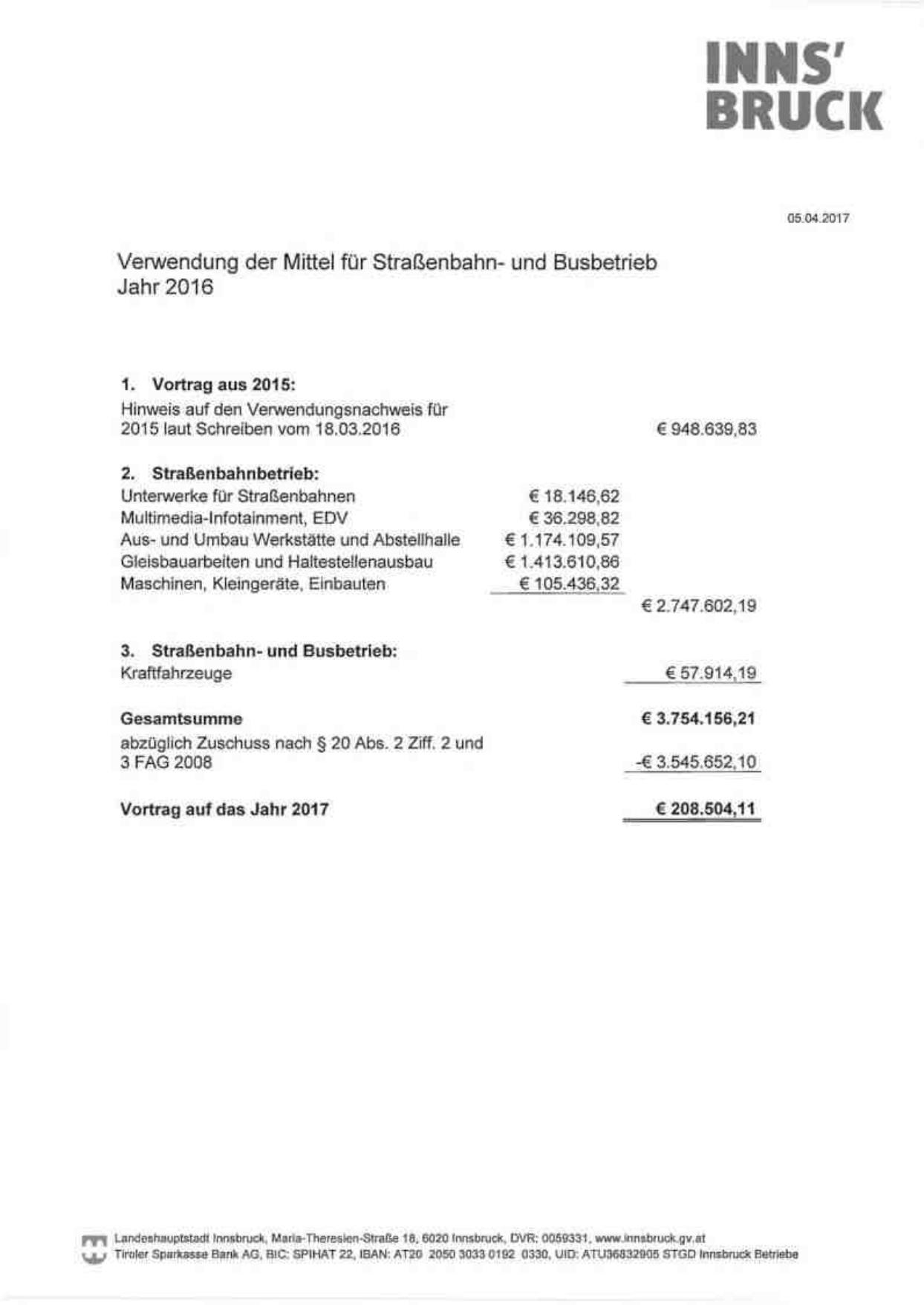 Verwendung der Mittel für Straßenbahn- und Busbetrieb