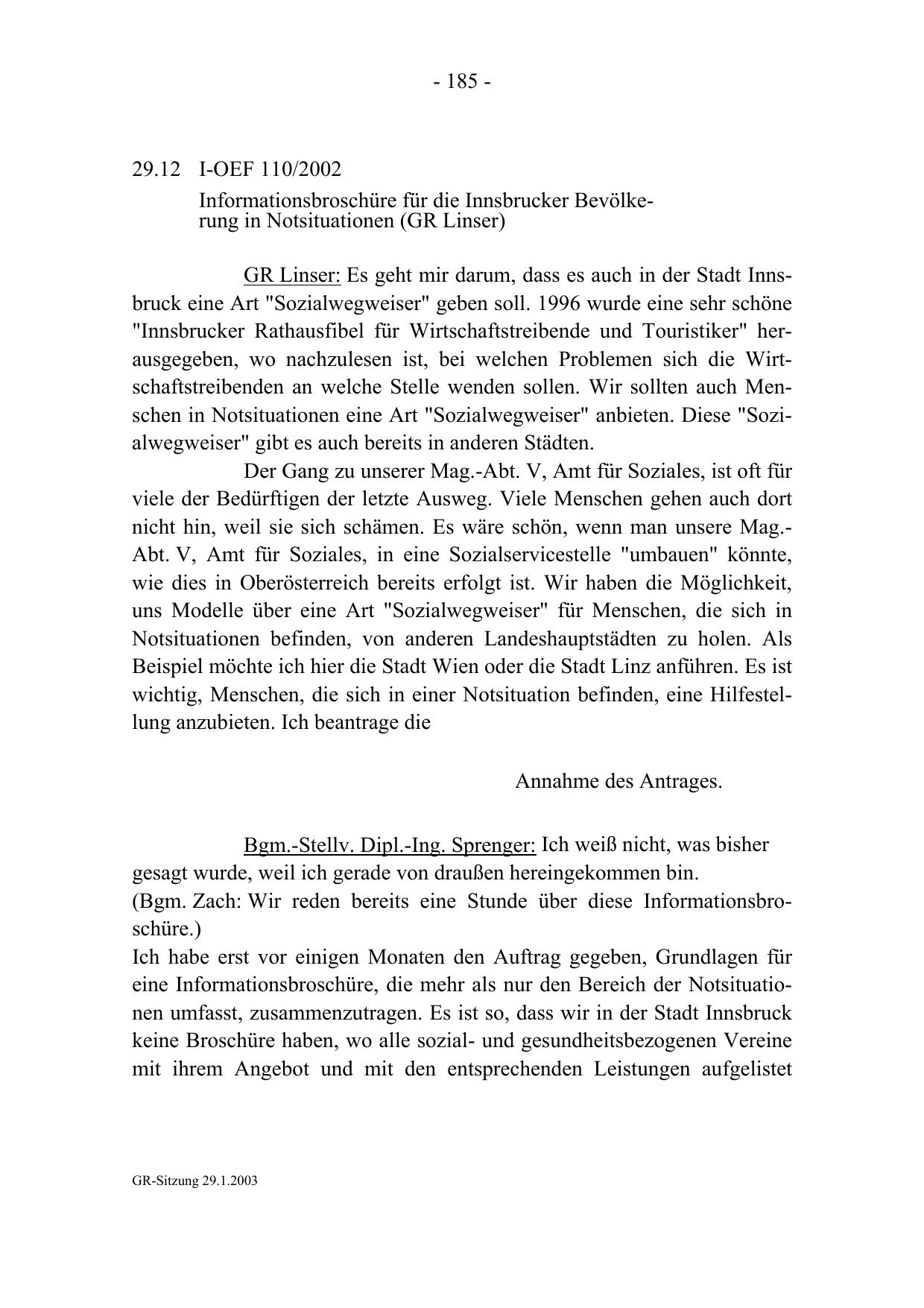 GR-Sitzung 29.1.2003
