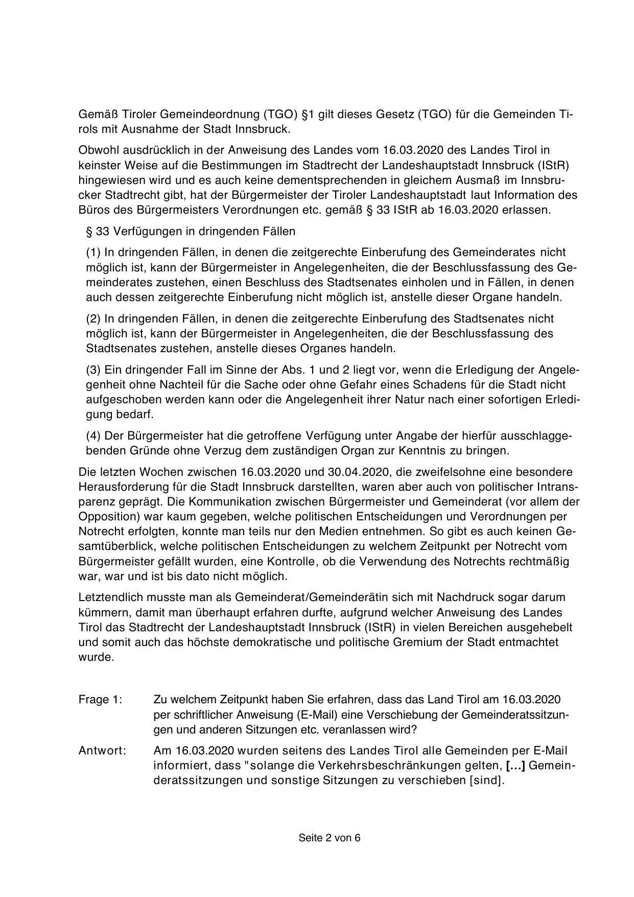 hingewiesen wird und es auch keine dementsprechenden in gleichem Ausmaß im Innsbrucker Stadtrecht gibt, hat der Bürgermeister der Tiroler Landeshauptstadt laut Information des