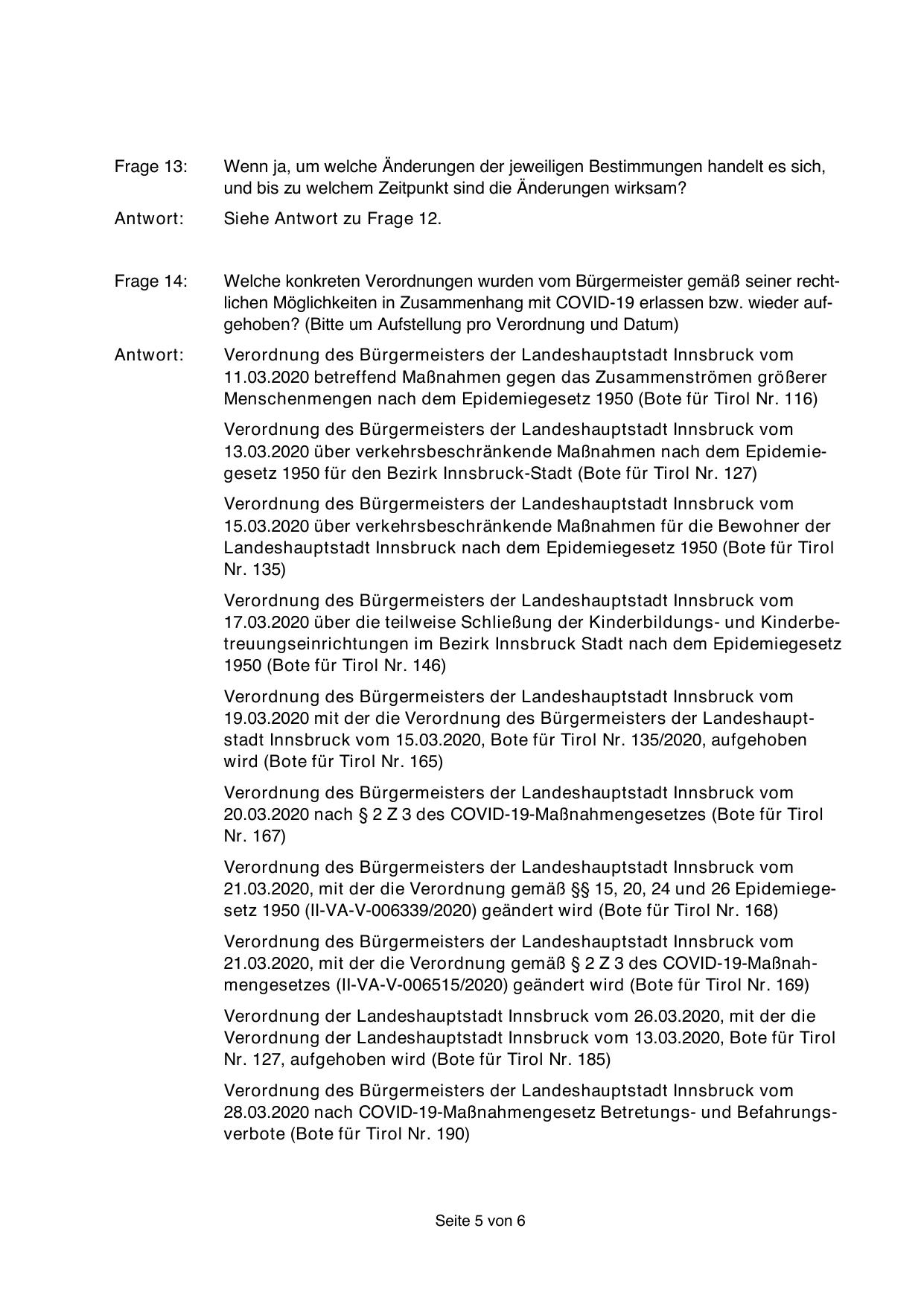 Verordnung der Landeshauptstadt Innsbruck vom 13.03.2020, Bote für Tirol