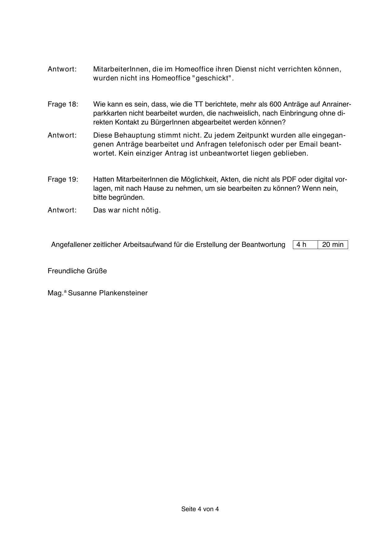 Wie kann es sein, dass, wie die TT berichtete, mehr als 600 Anträge auf Anrainerparkkarten nicht bearbeitet wurden, die nachweislich, nach Einbringung ohne direkten Kontakt zu BürgerInnen abgearbeitet werden können?