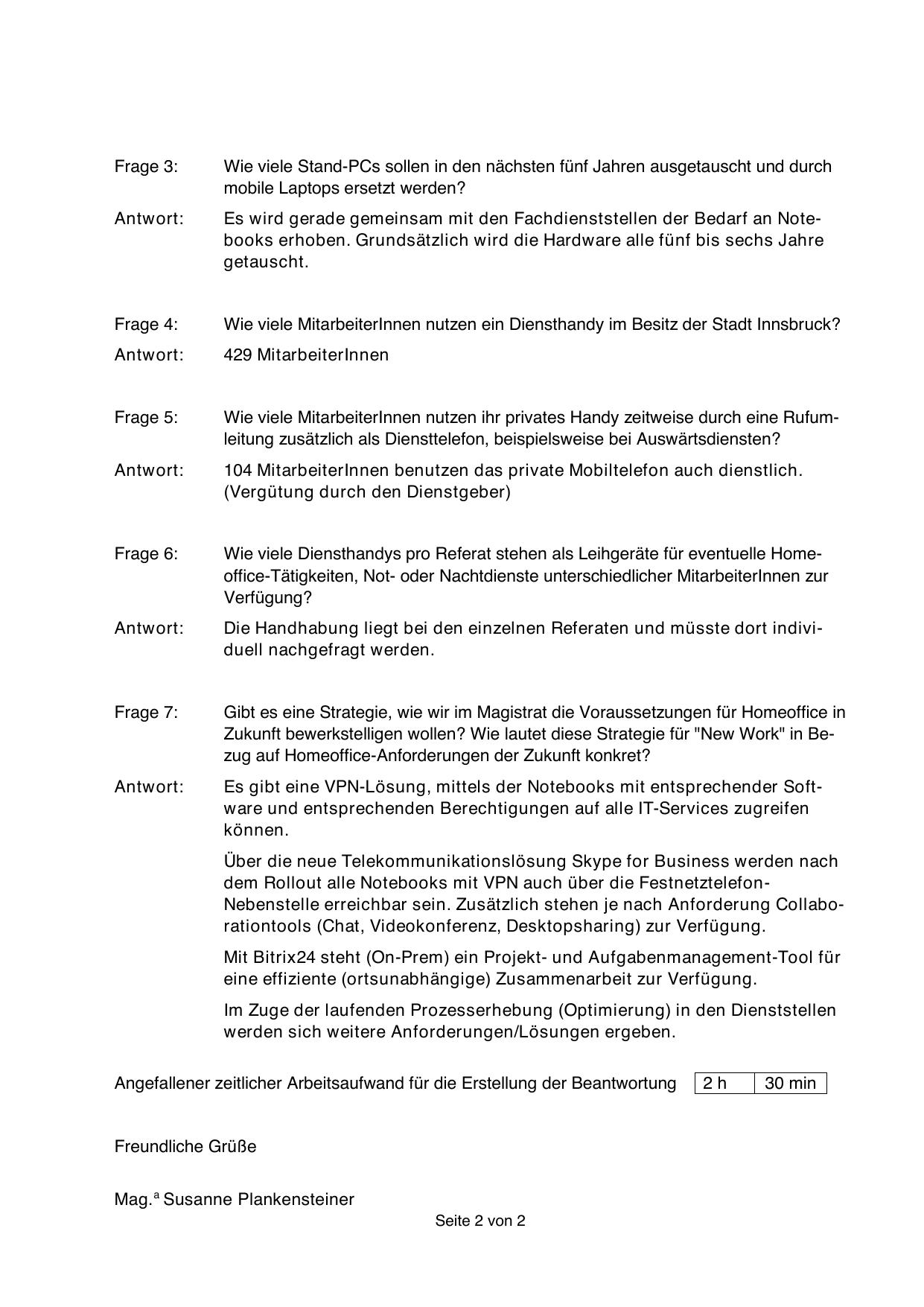 Angefallener zeitlicher Arbeitsaufwand für die Erstellung der Beantwortung