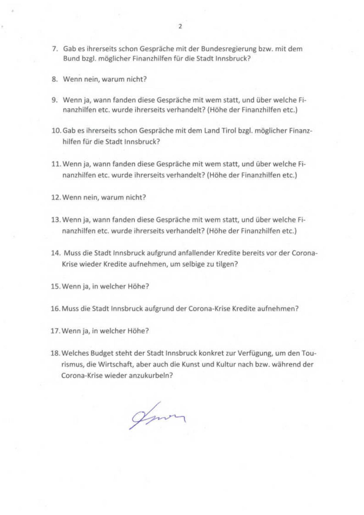 10. Gab es ihrerseits schon Gespr ä che mit dem Land Tirol bzgl. möglicher Finanz -