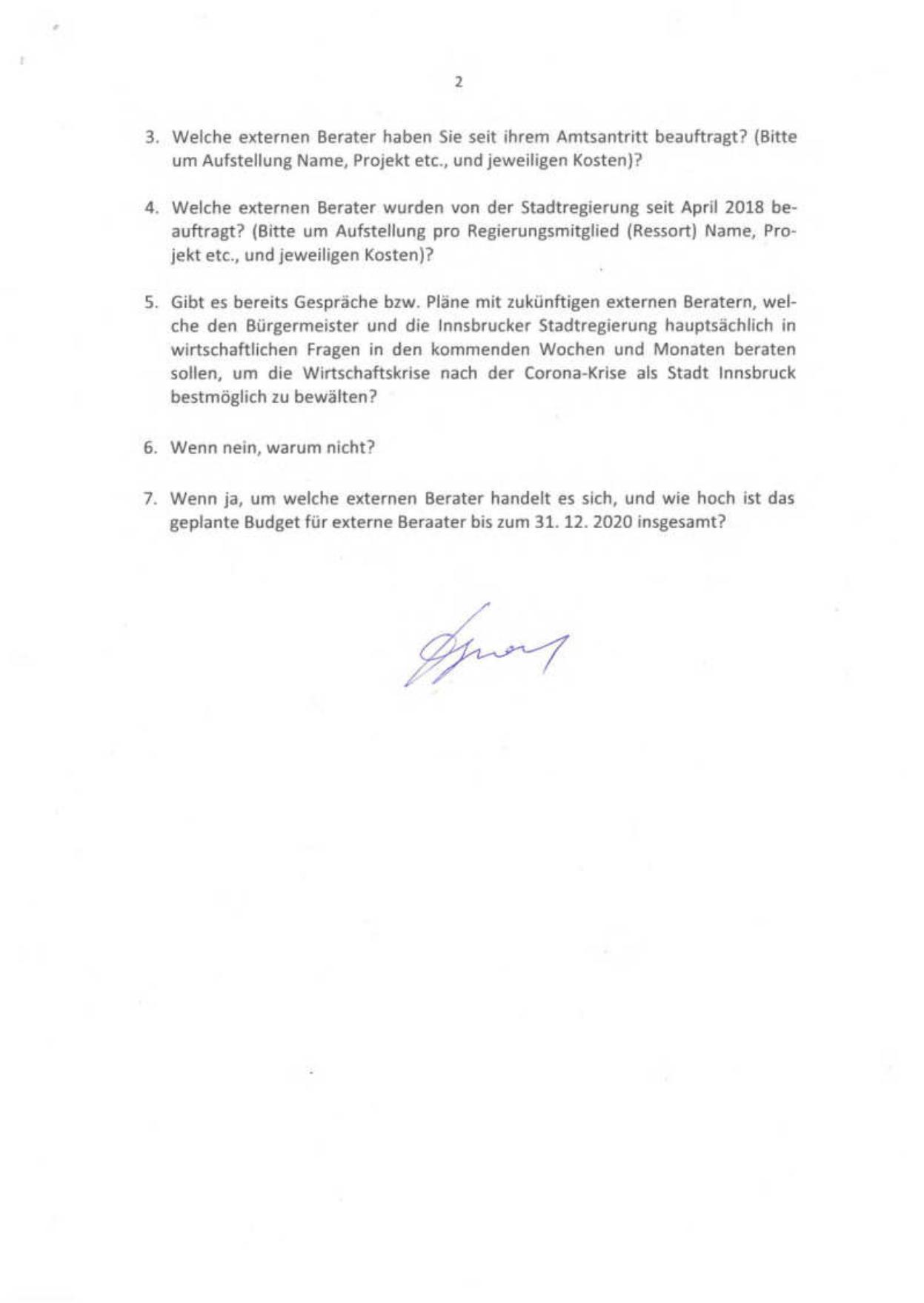 5. Gibt es bereits Gesprä che bzw. Pläne mit zuk ünftigen externen Beratern, welche den B ü rgermeister und die Innsbrucker Stadtregierung haupts ä chlich in