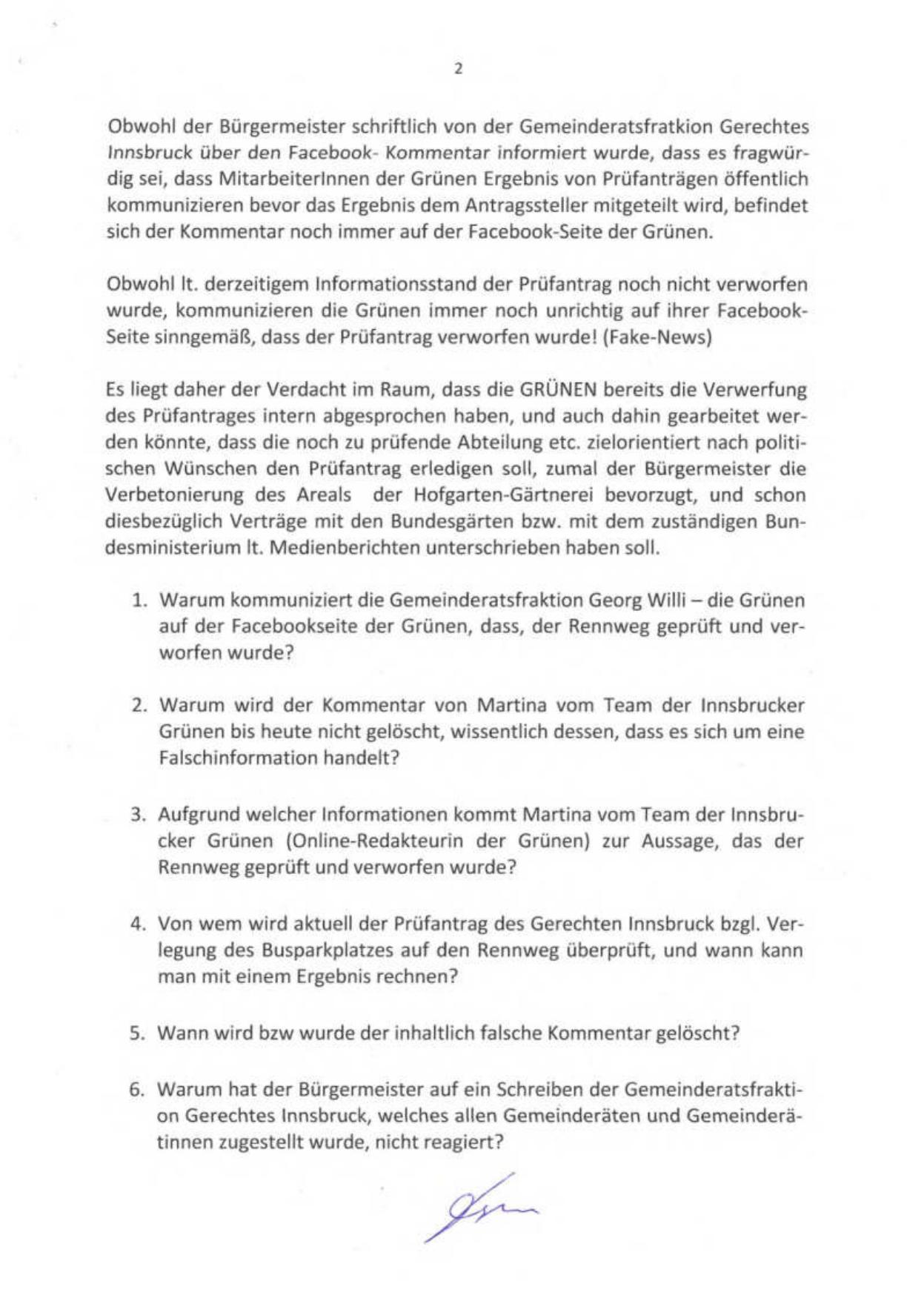 6. Warum hat der Bürgermeister auf ein Schreiben der Gemeinderatsfraktion Gerechtes Innsbruck, welches allen Gemeinder äten und Gemeinder ä tinnen zugestellt wurde, nicht reagiert ?