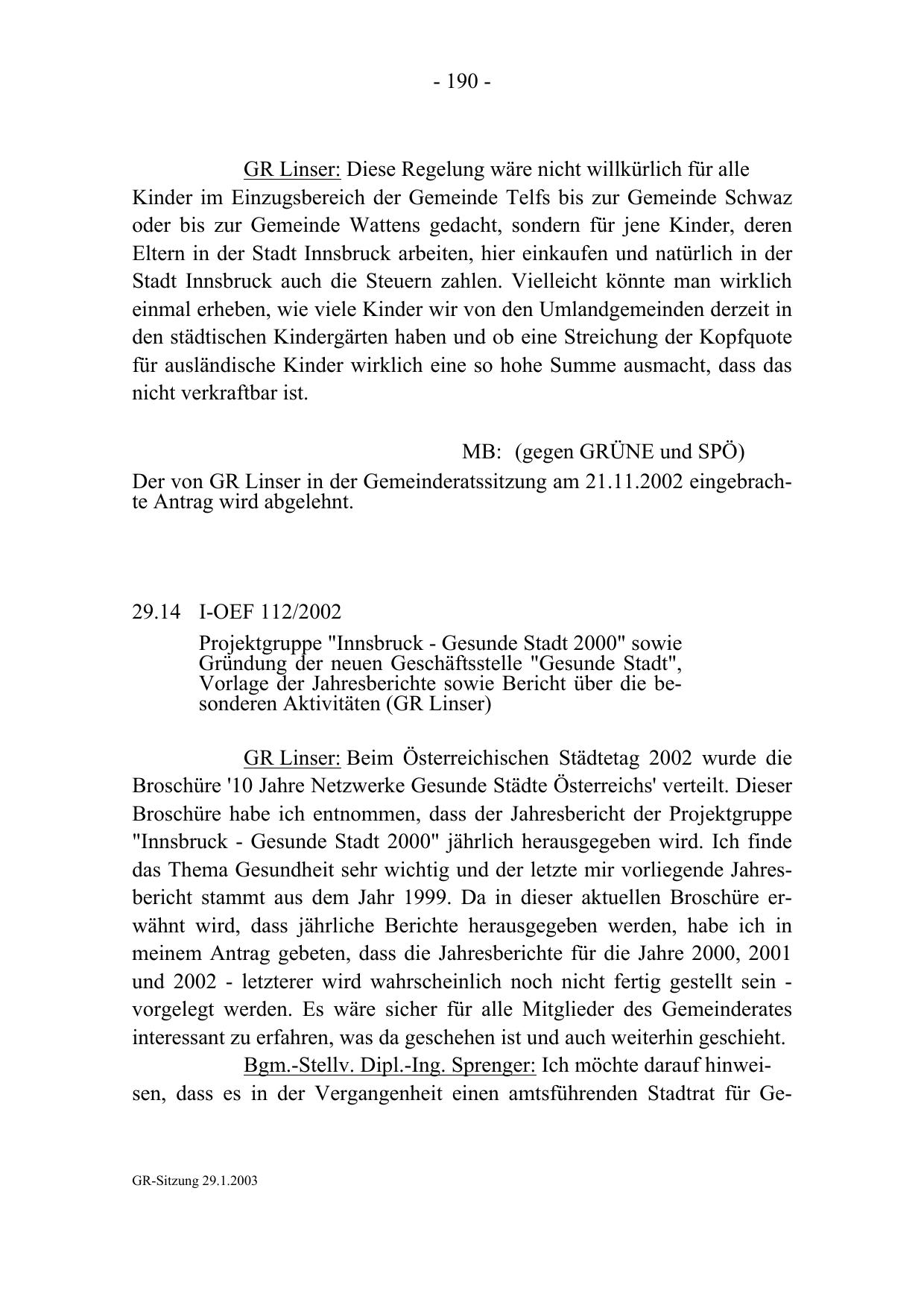 GR-Sitzung 29.1.2003