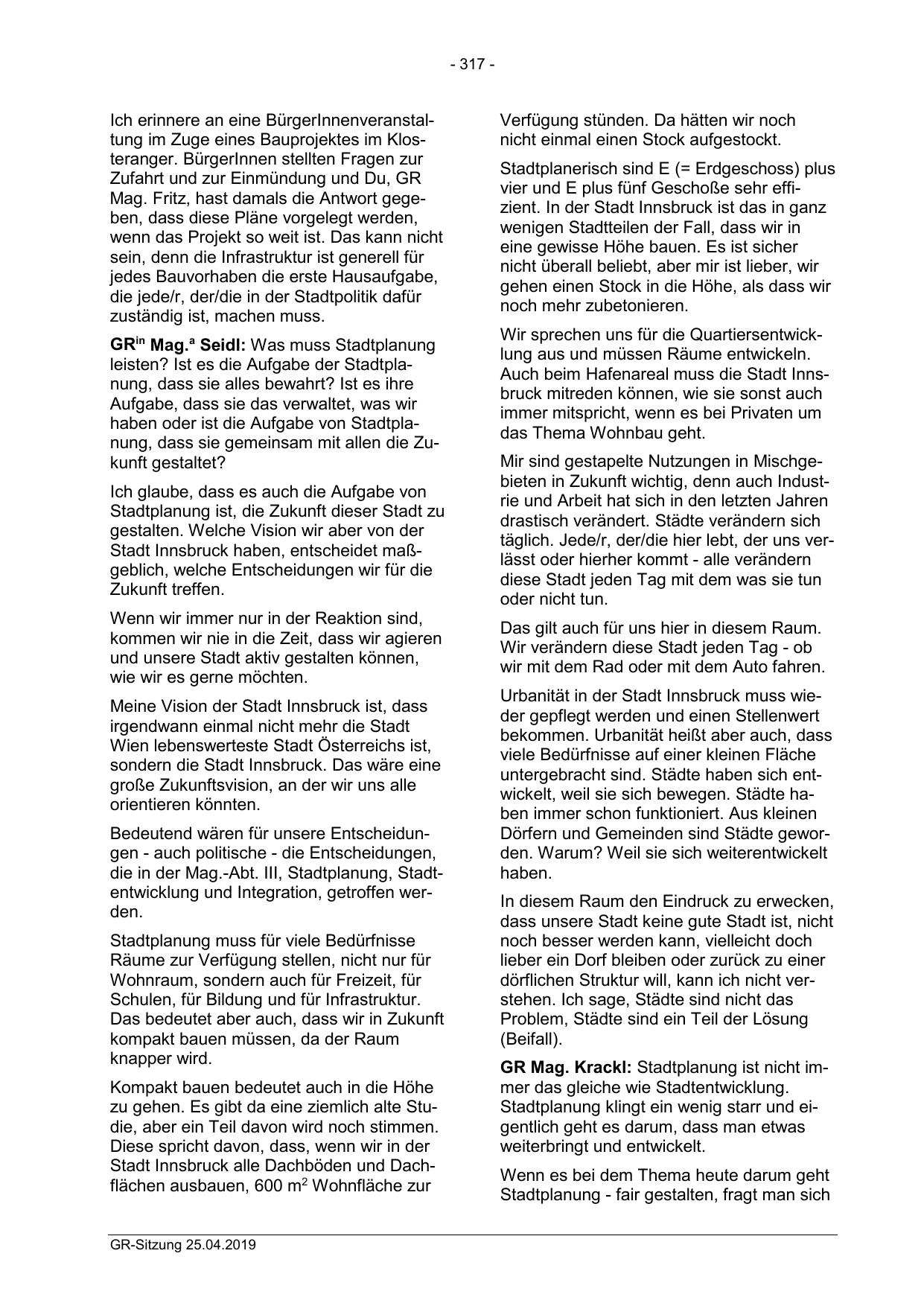 vier und E plus fünf Geschoße sehr effizient. In der Stadt Innsbruck ist das in ganz