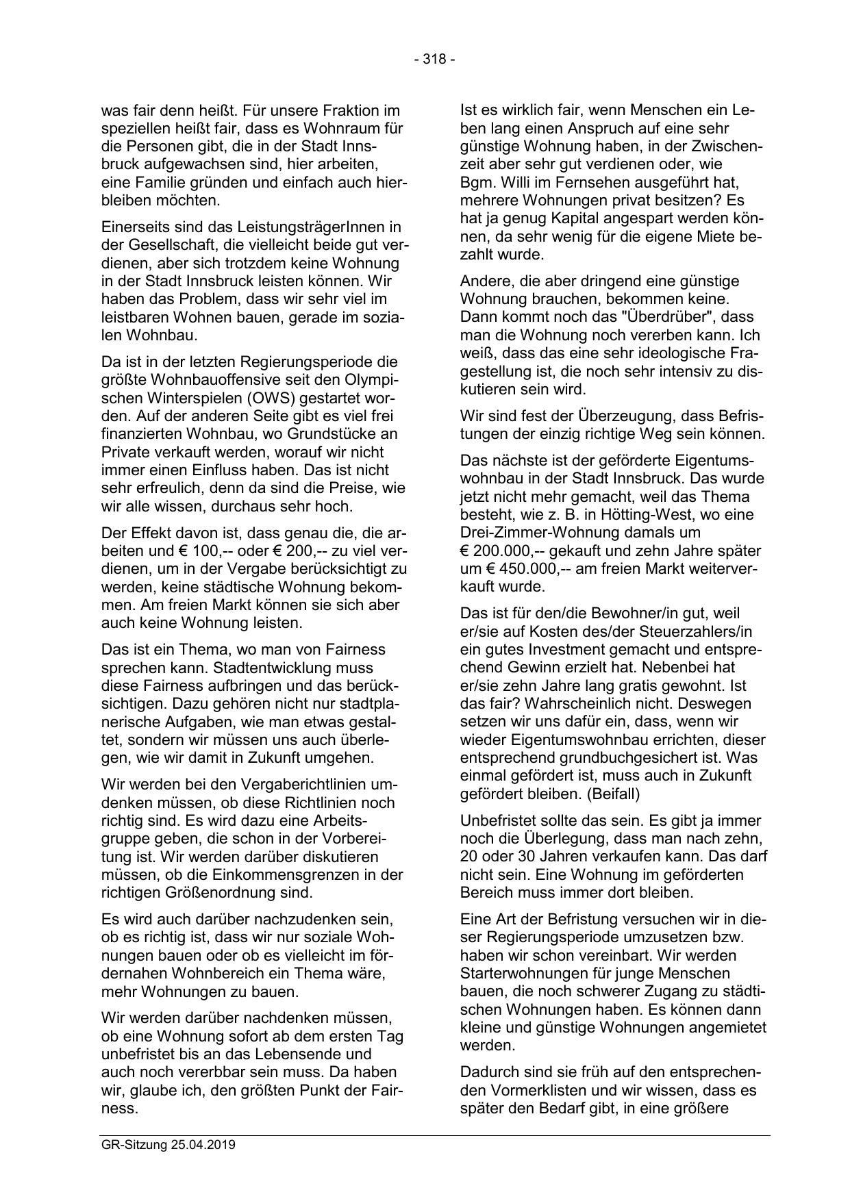 Das nächste ist der geförderte Eigentumswohnbau in der Stadt Innsbruck. Das wurde