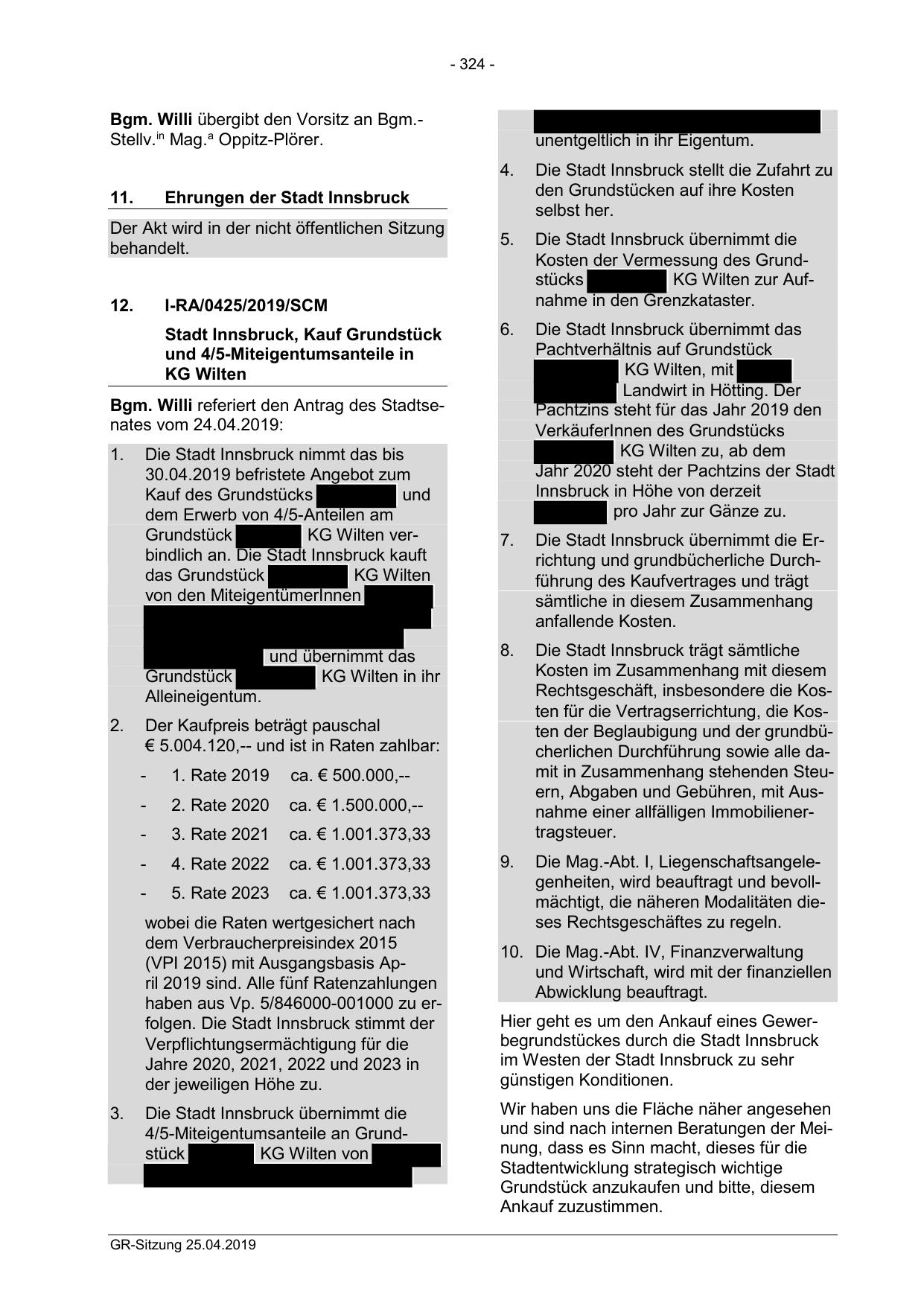 KG Wilten verbindlich an. Die Stadt Innsbruck kauft