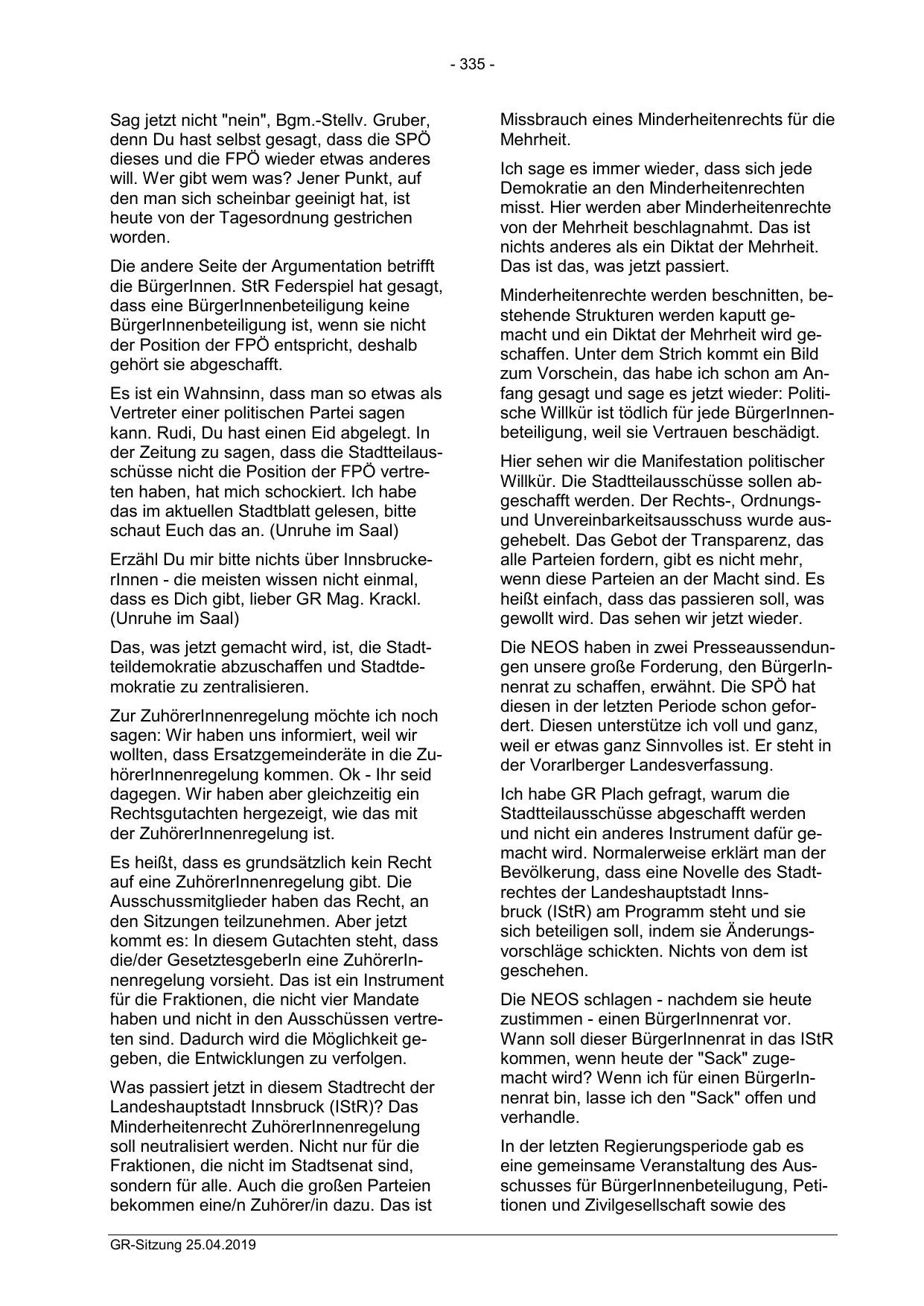 wollten, dass Ersatzgemeinderäte in die ZuhörerInnenregelung kommen. Ok - Ihr seid