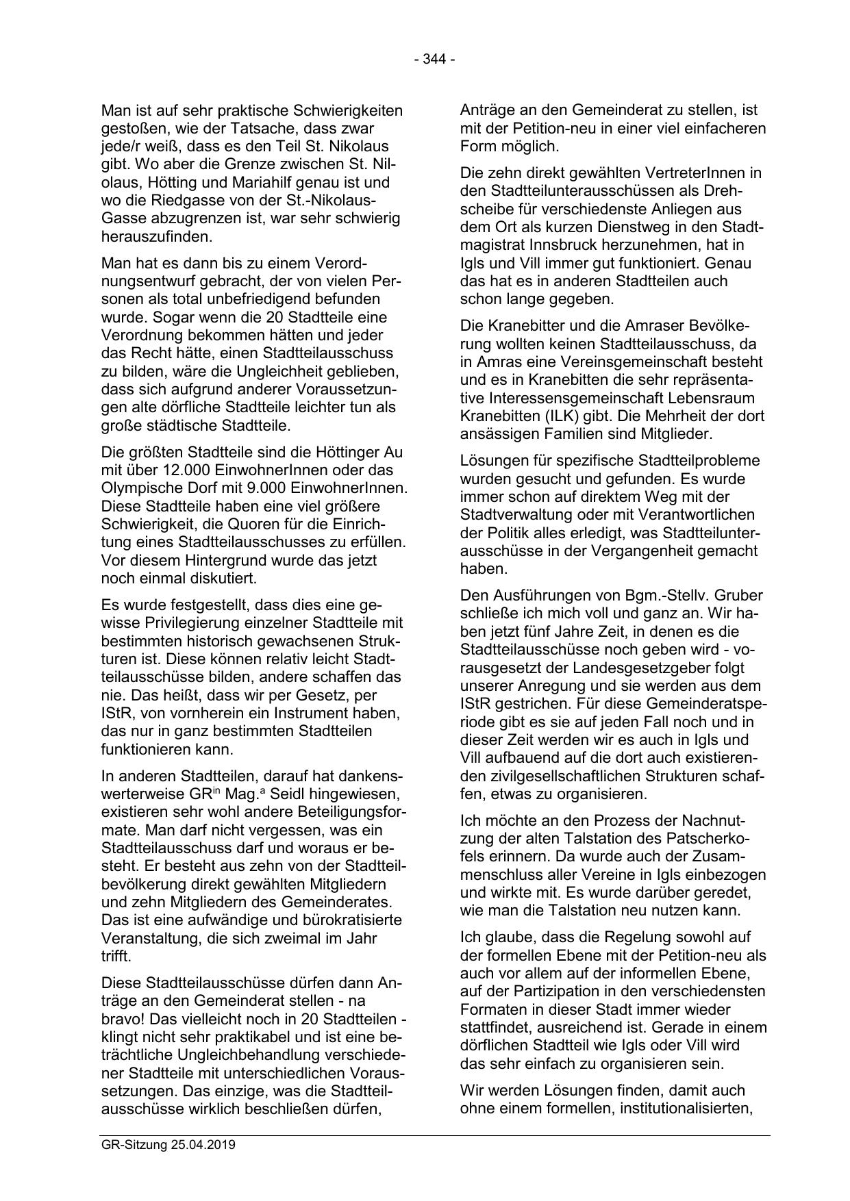 bestimmten historisch gewachsenen Strukturen ist. Diese können relativ leicht Stadtteilausschüsse bilden, andere schaffen das